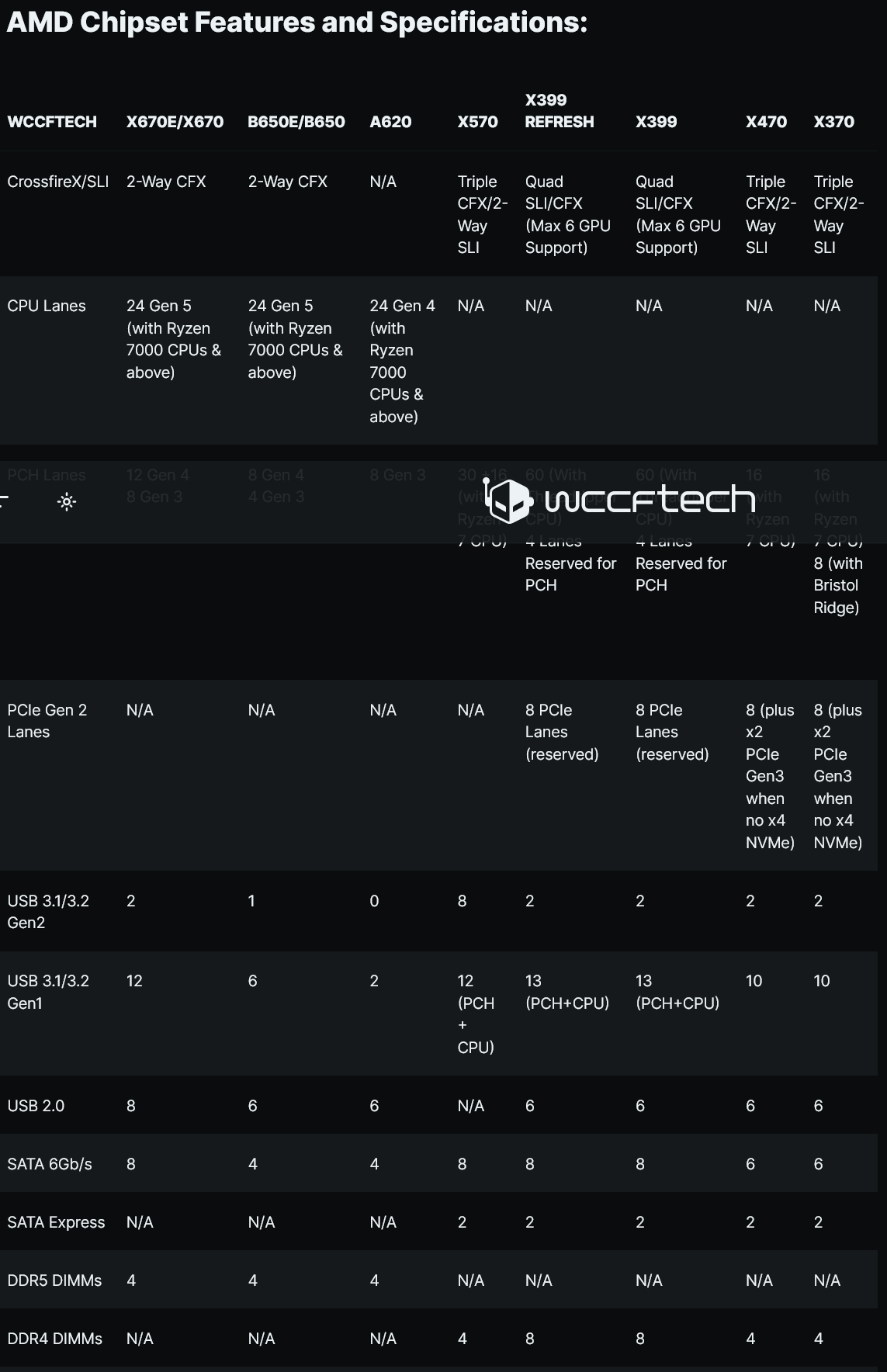 AMD A620 칩셋에는 USB 3.2 Gen 2x2 포트도 없으며 USB 3.2 Gen 2 포트는 B650 시리즈의 6개에 비해 2개로 제한됩니다. PCH에는 2개의 USB 3.1 Gen 2 포트가 있고 6개의 USB 2.0 포트는 유지됩니다. 순수한 게임 목적을 위해 Ryzen 7000 Non-X CPU 또는 X3D와 같은 보급형 보드를 페어링하면 매우 저렴하면서도 강력한 PC가 될 것입니다. 더 많은 정보를 기대하고 내일 다양한 마더보드 제조업체의 AMD AM5 A620 라인업을 먼저 살펴보십시오.