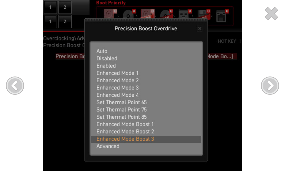 독점적인 Enhanced Mode Boost는 Ryzen 7000X3D 시리즈 프로세서의 성능을 향상시키기 위한 전용 설계입니다. 사전 설정된 세 가지 프로필을 통해 사용자는 더 높은 CPU 성능을 향상하고 게임 성능뿐만 아니라 생성 사용에도 이점을 얻을 수 있습니다.