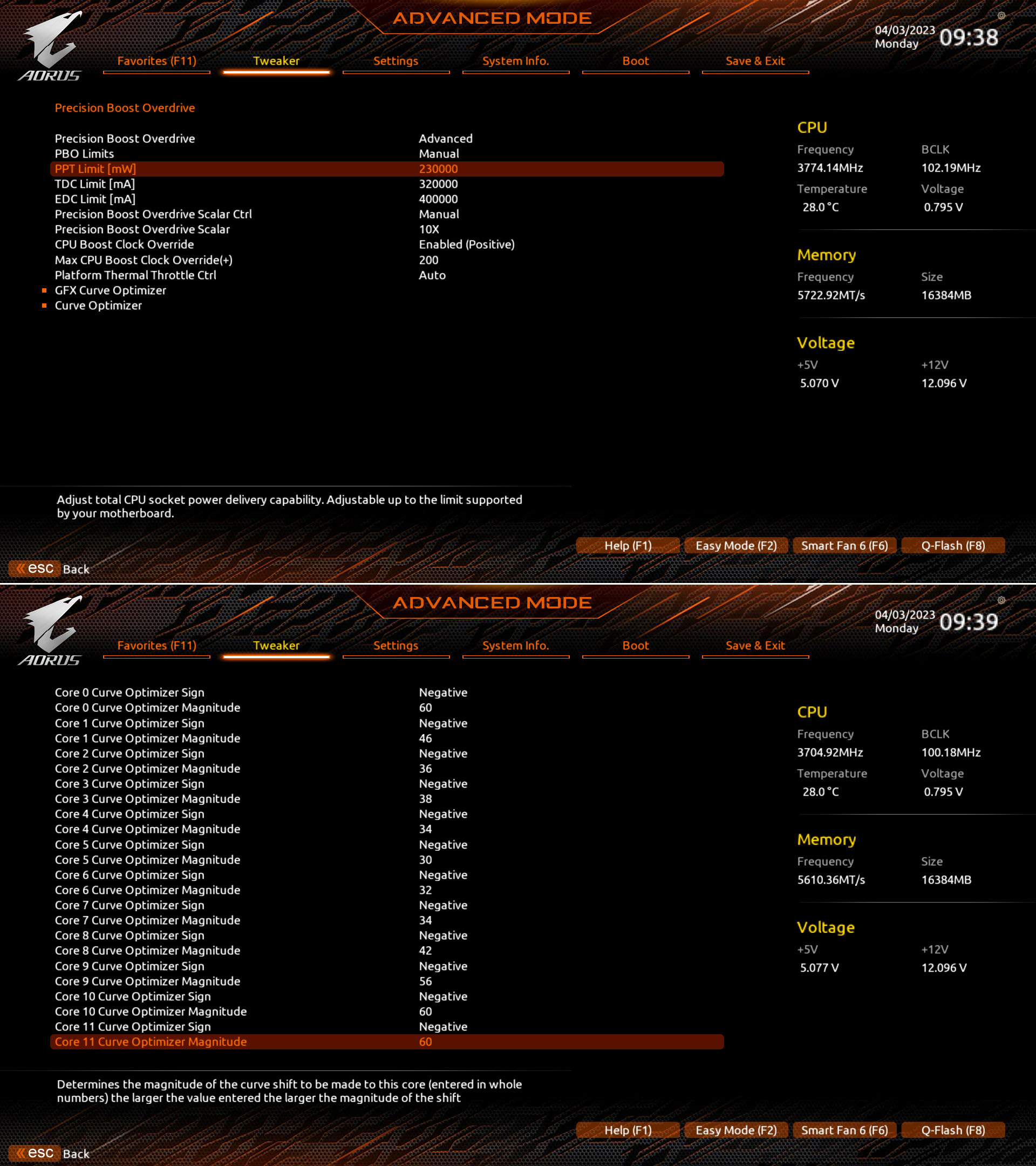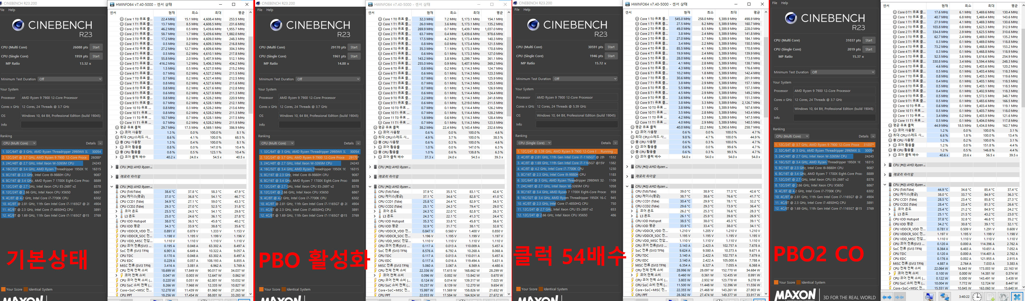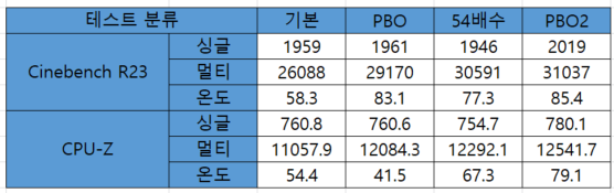 코어수가 많은 CPU일수록 코어별 전압을 줄이는 PBO2 CO(Curved Optimizer)가 유리했습니다.