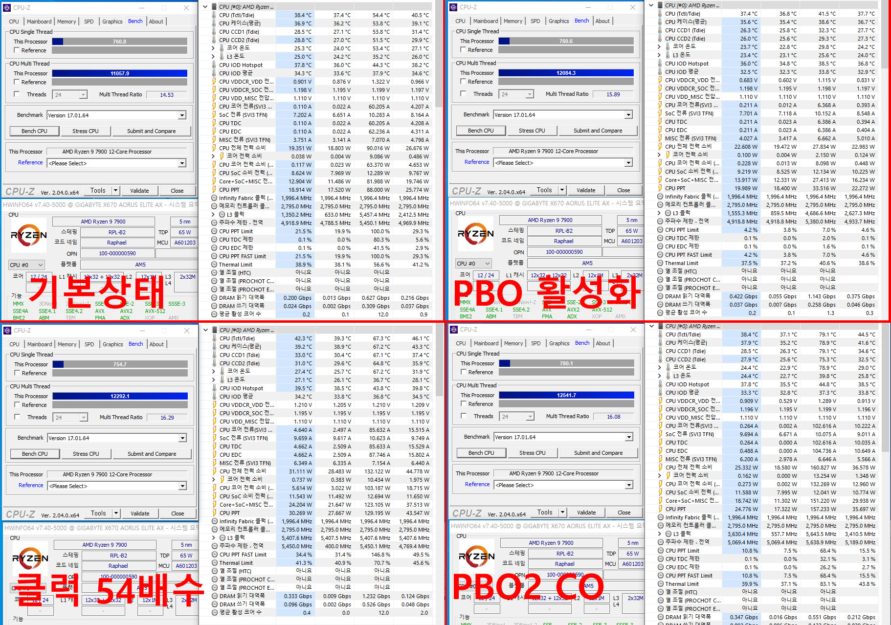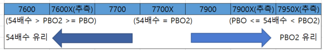 - 7600 / 7700 / 7700X와 달리, 단순히 PBO를 켜는건 54배수과 비교했을때, 높아지는 온도 대비 성능 향상이 저조했습니다.