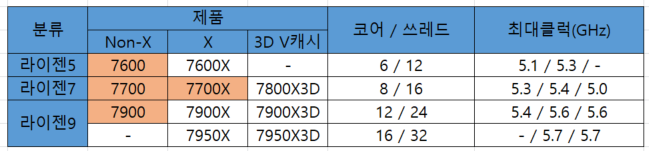 판매되고 있는 AMD 라이젠 5세대 리스트이며, 이번 사용후기까지 약 2주씩 사용한 CPU는 7600 / 7700 / 7700X / 7900입니다.