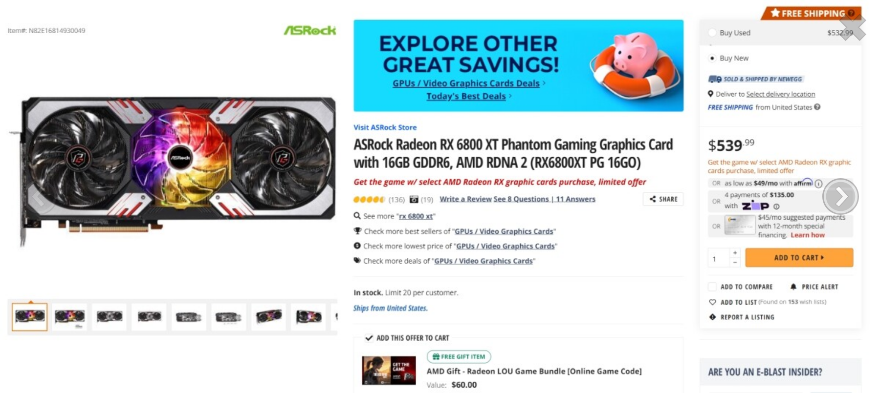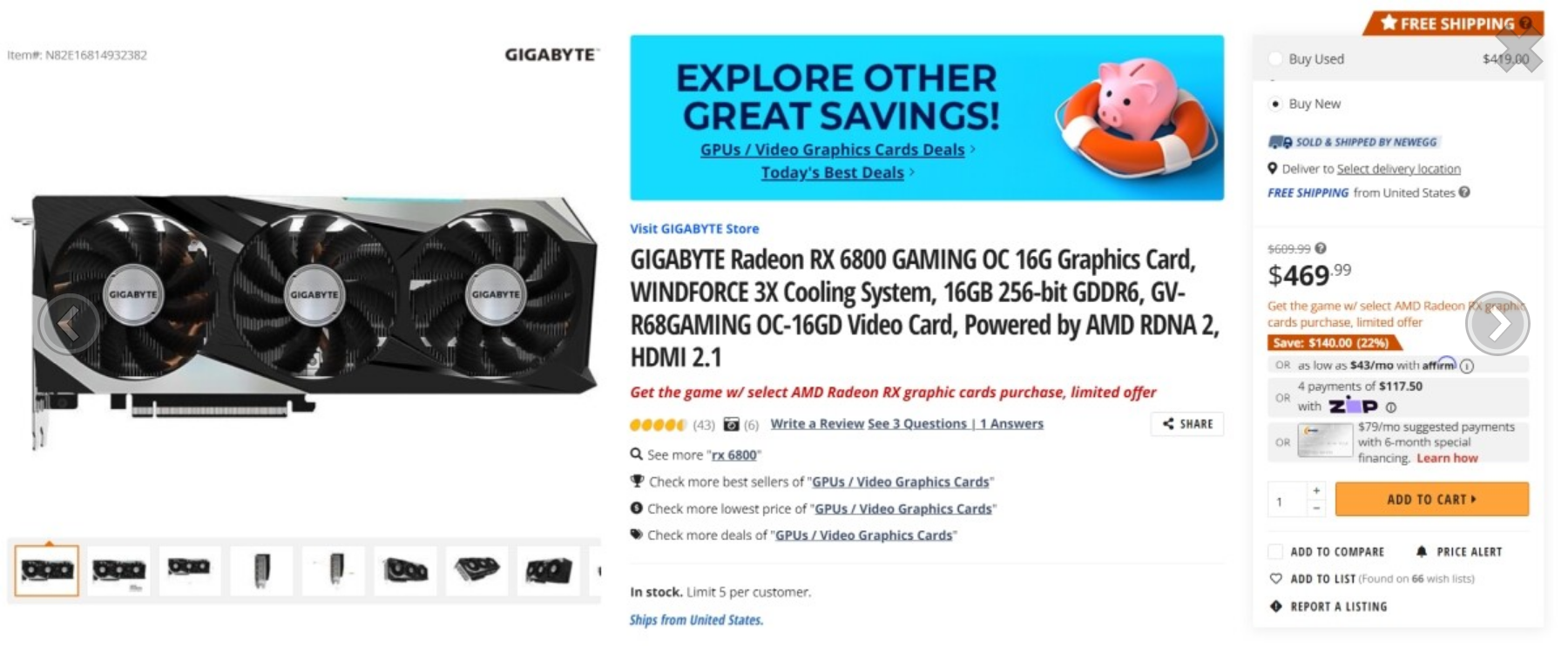 AMD는 마케팅 슬라이드를 진행 하고 GeForce RTX 4070 출시에 앞서 NVIDIA에 대한 VRAM 카드를 뽑을 뿐만 아니라 Radeon RX 6000 시리즈 그래픽 카드에 대해 일부 할인을 하고 있는 것 같습니다. 현재 Radeon RX 6800은 최저 $469.99에 판매되고 있습니다 . . Tom's Hardware에서 발견한 바와 같이 Radeon RX 6800 XT와 Radeon RX 6800은 이전에 다양한 AIB 파트너로부터 30달러에서 50달러에 이르는 약간의 할인을 받았고 현재 MSRP보다 110달러 낮은 가격에 판매되고 있어 539달러에서 괜찮은 구매가 되었습니다. $469. 더욱 흥미로운 점은 ASRock Radeon RX 6800 XT Phantom Gaming 및 Gigabyte Radeon RX 6800 Gaming OC WindForce 3X 그래픽 카드를 포함한 꽤 좋은 맞춤형 버전입니다.