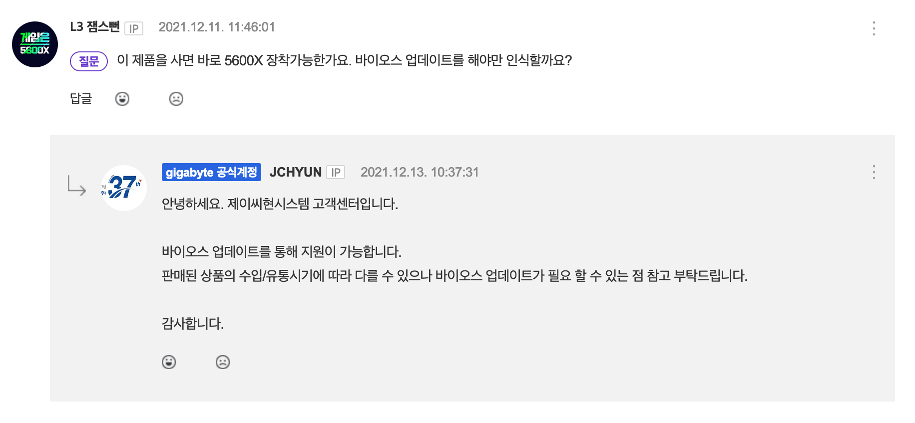 GIGABYTE A320M-S2H + 라이젠 5600X 후기필드테스트 2021. 12. 15. 16:04728x90