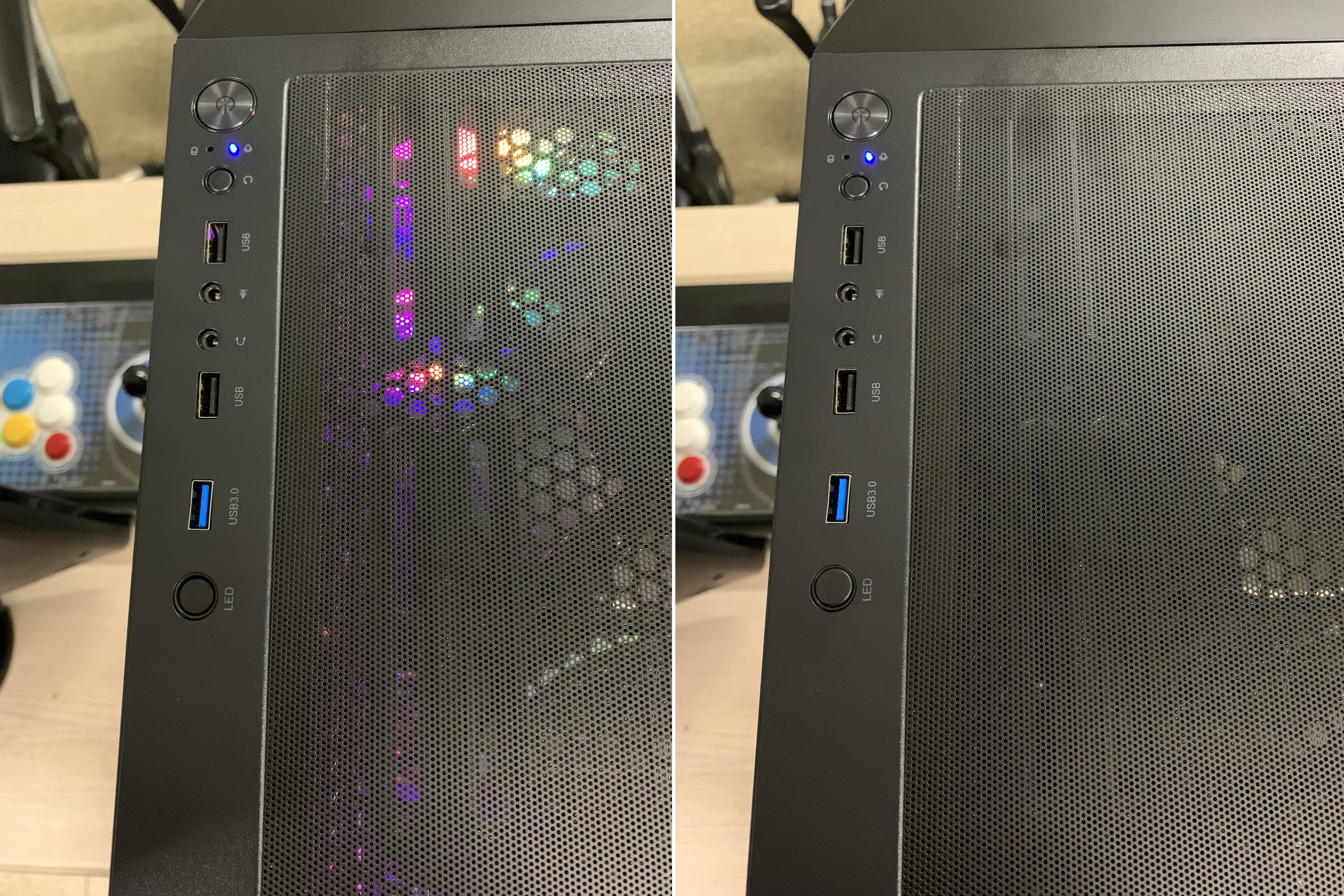 LED 버튼은 토글 방식으로 팬의 RGB를 끄고 켤수 있습니다.