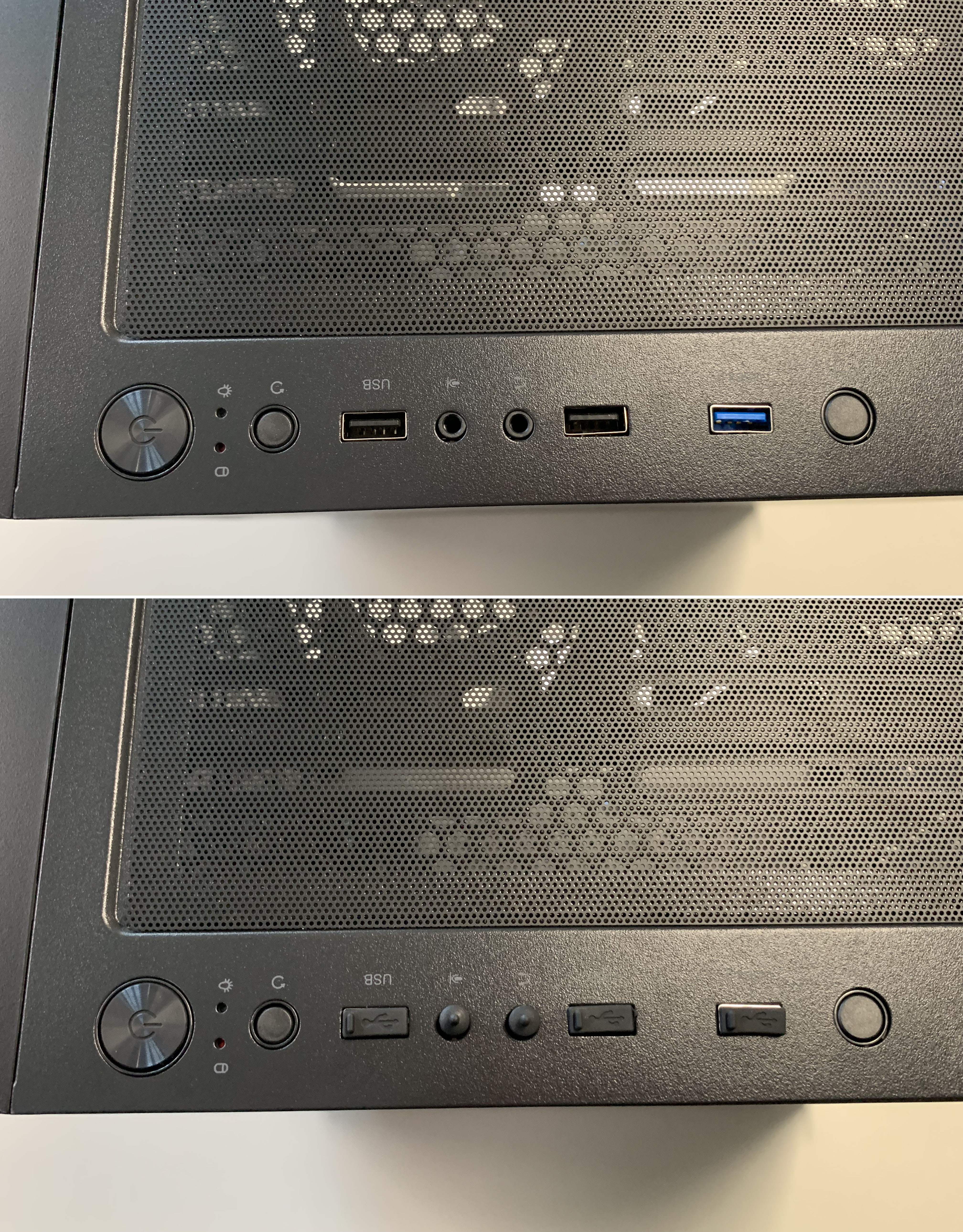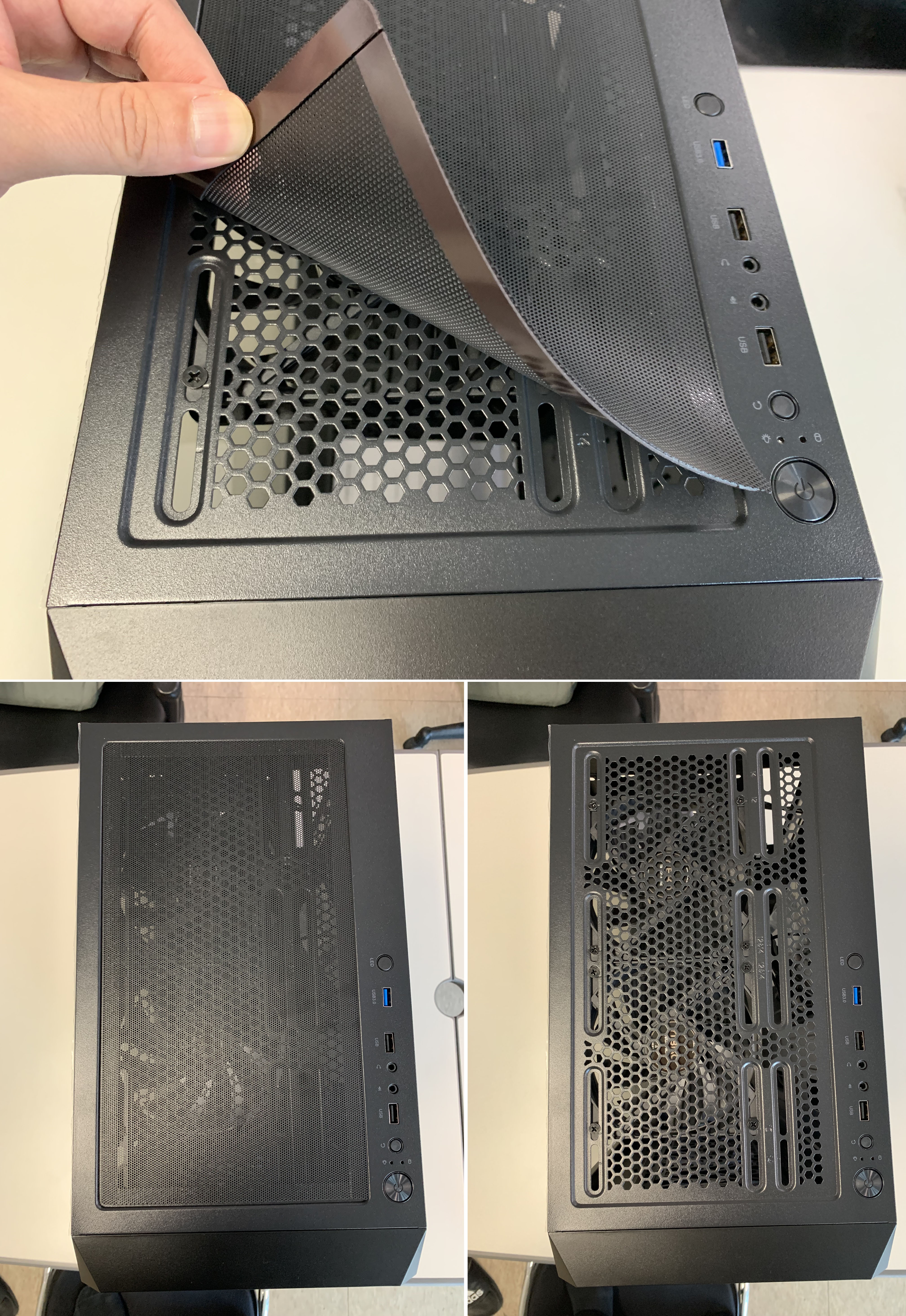 전면 패널은 내부에 베젤 먼지필터가 있어서 2중으로 먼지 유입을 막고 있습니다.