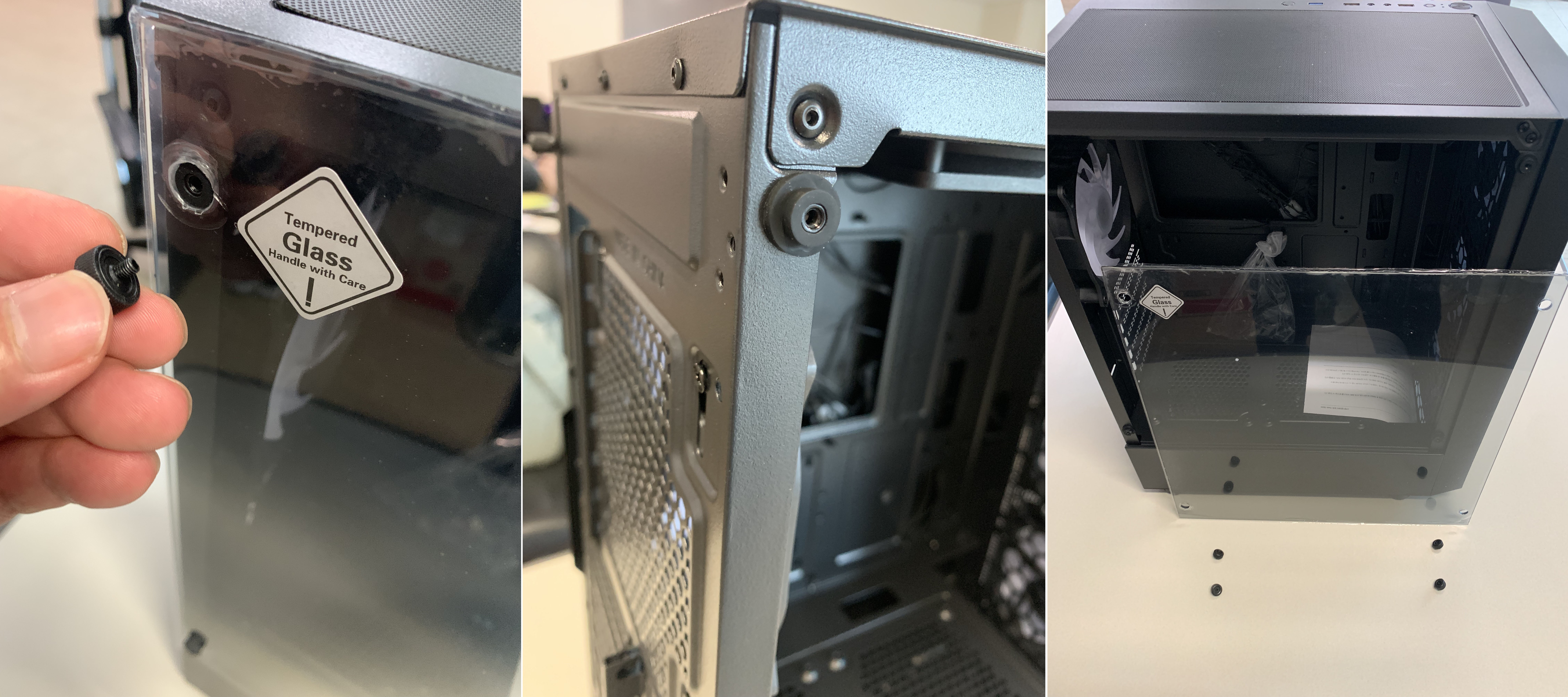 4개의 나사를 손으로 풀수 있어, 강화유리를 쉽게 분리할 수 있습니다.