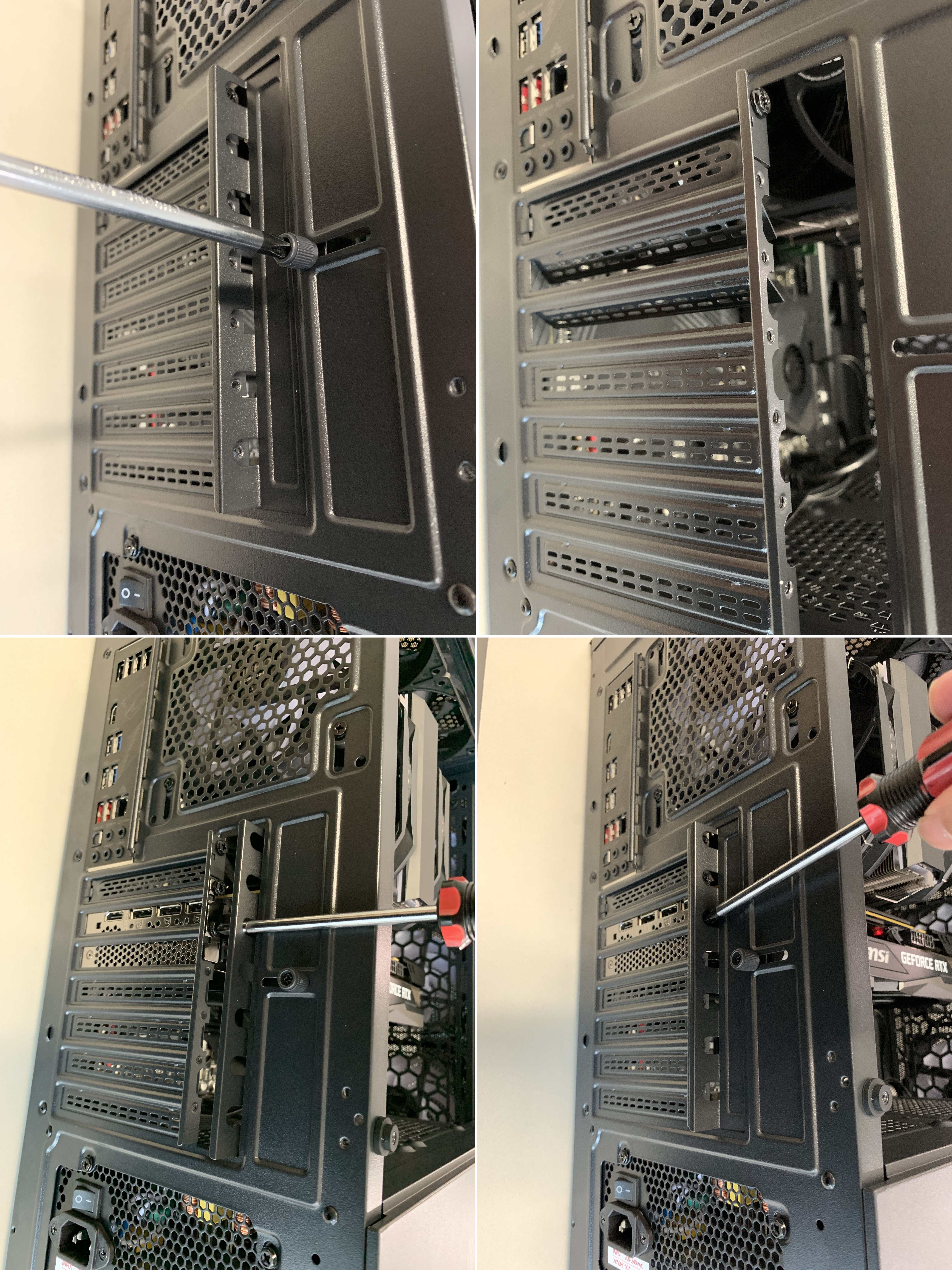 슬롯을 손으로 밀어서 분리한 다음, 외장 그래픽카드를 설치합니다.