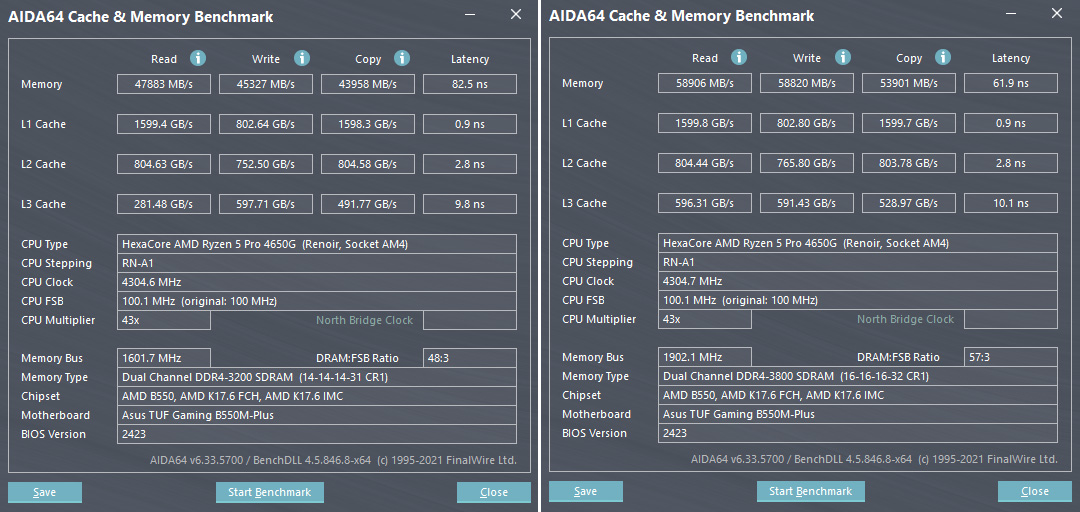 일반적인 라이젠 CPU는 통상 3800MHz까지 지원하지만, 4650G를 포함한 APU는 4400MHz까지 지원한다고 합니다.