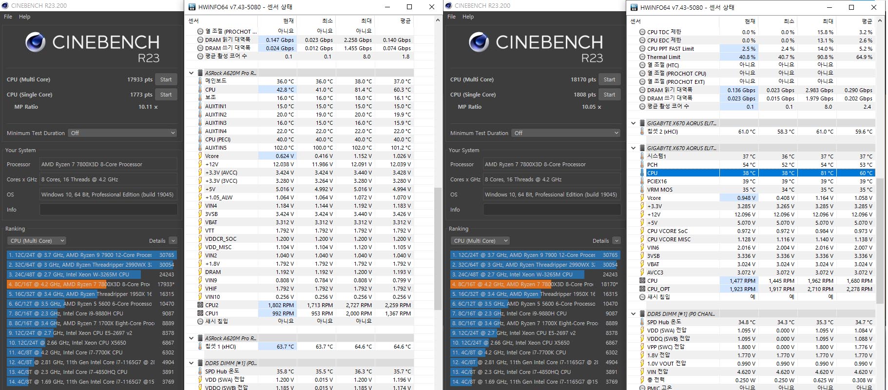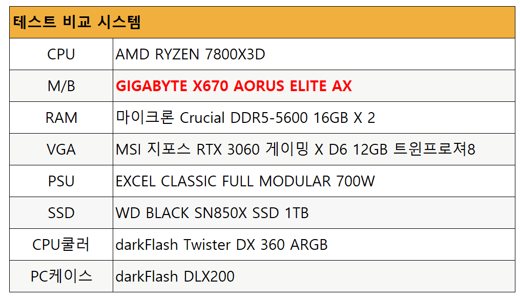 동일한 시스템에서 상급 메인보드만 변경하여 동일한 테스트를 진행하여, 성능의 변화를 확인해보았습니다.