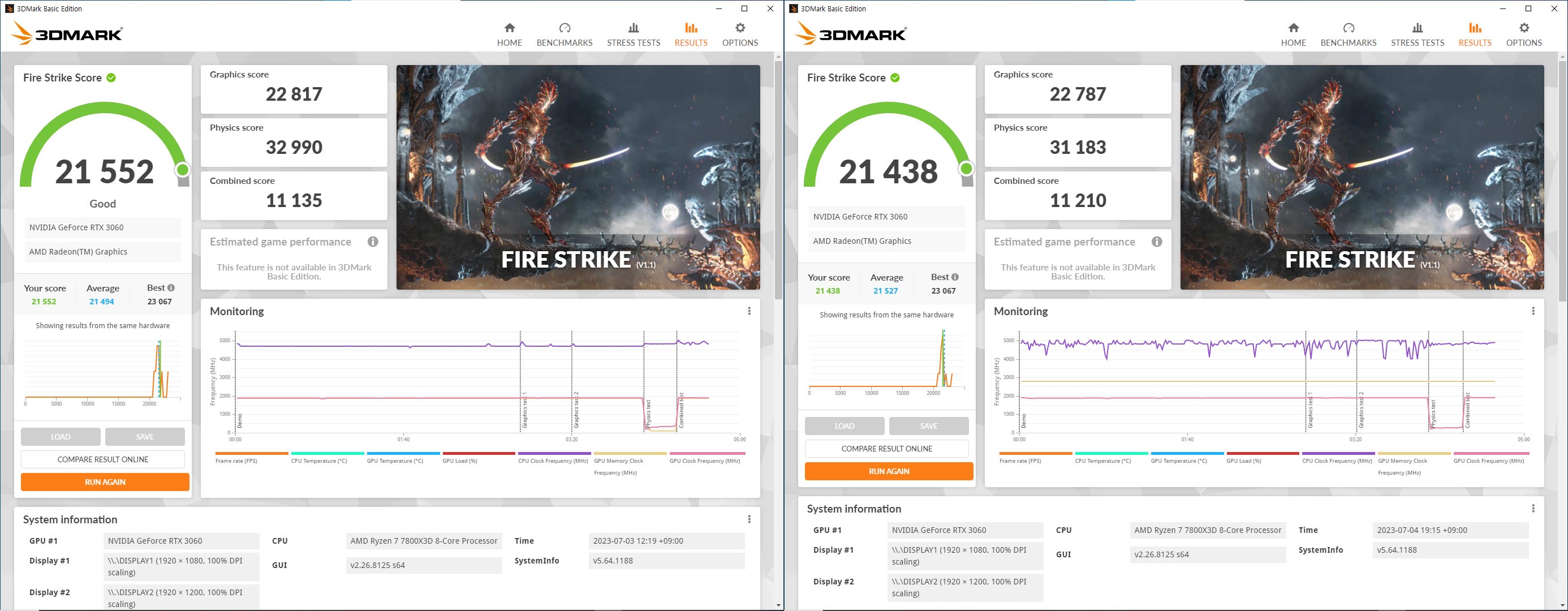 메인보드만 다른 두 시스템 비교 결과, 프로그램(게임) 마다 결과가 달랐으며, 그 차이가 나더라도 오차범위내였습니다.
