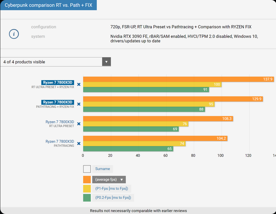 PCGameshardware가 그렇게 했고 결과는 새로운 비공식 패치를 적용하여 최대 27%의 개선을 보여주었습니다. 8코어 3D V-Cache 칩인 AMD Ryzen 7 7800X3D CPU를 사용하여 CPU는 평균 FPS가 108.3 FPS에서 137.9 FPS로 증가했습니다. 이는 개발자가 아직 해결하지 못한 8코어 AMD Ryzen CPU 주변의 게임 및 최적화에 여전히 큰 문제가 있음을 보여줍니다.