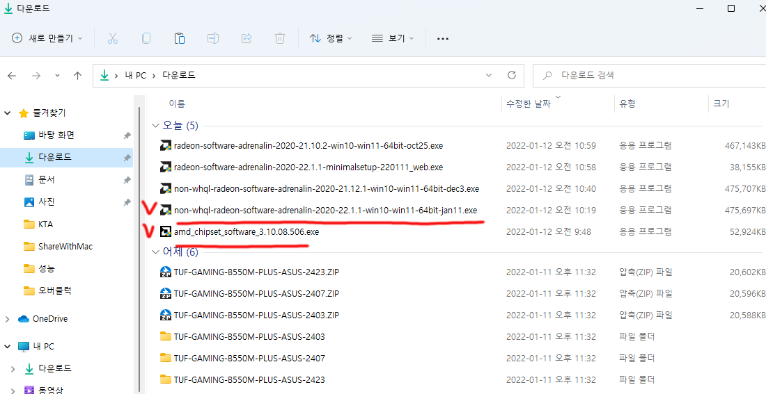 - 메인보드사에서 받아도 되고, amd에서 받아도 된다.(https://www.amd.com/ko/support)