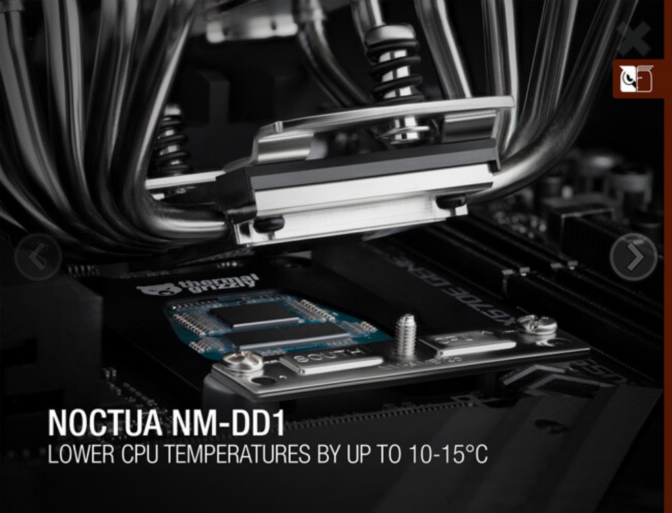 Roland Mossig(Noctua CEO)는 "제거 및 다이렉트 다이 냉각은 CPU의 보증을 무효화하고 손상의 특정 위험을 부담하므로 모든 사람에게 해당되는 것은 아닙니다."라고 설명합니다. "그러나 얻을 수 있는 성능 향상은 일반적으로 10~15°C 범위에서 놀랍지만 경우에 따라 오프셋 마운팅 바와 결합하여 거의 20°C까지 향상되는 것을 확인했습니다. 이것은 매니아 사용자에게 매력적인 옵션입니다. 고객이 우리 CPU 냉각기로 이 흥미로운 튜닝 조치를 구현할 수 있도록 우리와 협력해 준 Roman에게 감사드립니다!"