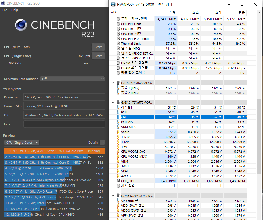 라이젠 7600시스템 환경에서 AM5소켓 기준으로 조립을 진행했습니다.