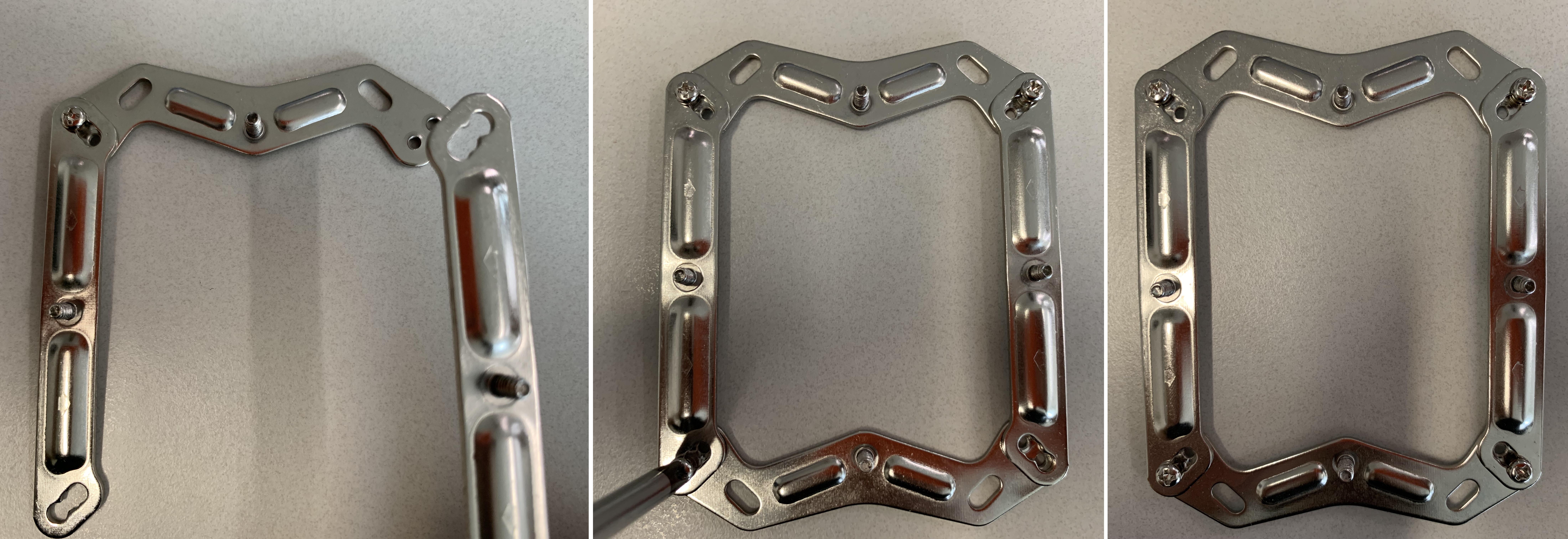 패키지에 포함된 플라스틱 기둥을 세우고, 방금 조립한 가이드를 올려서 나사로 고정합니다.