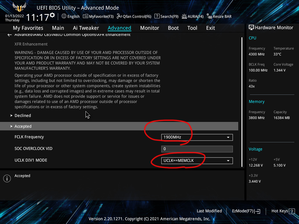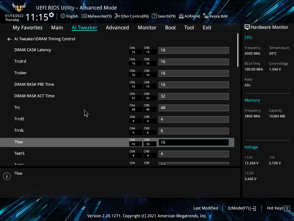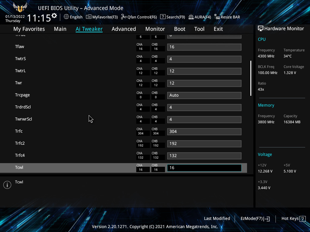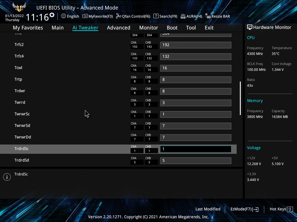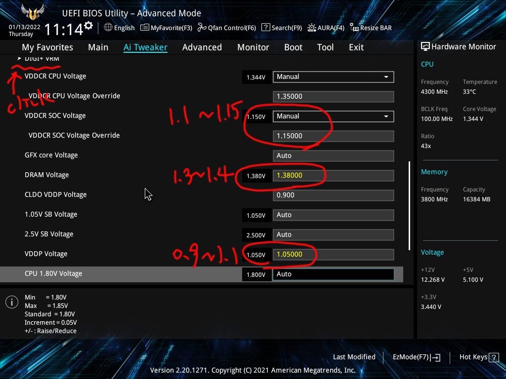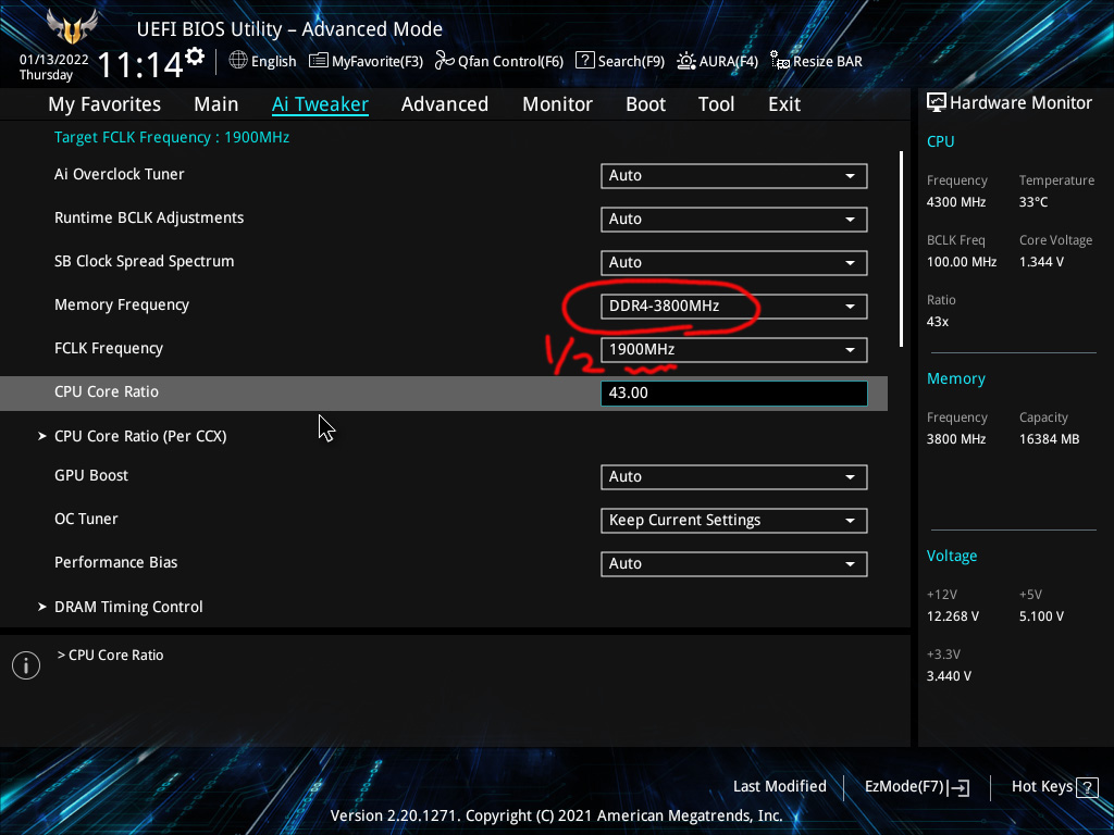1. 램 오버클럭 (3800MHz CL16-16-16-32 1.38V)