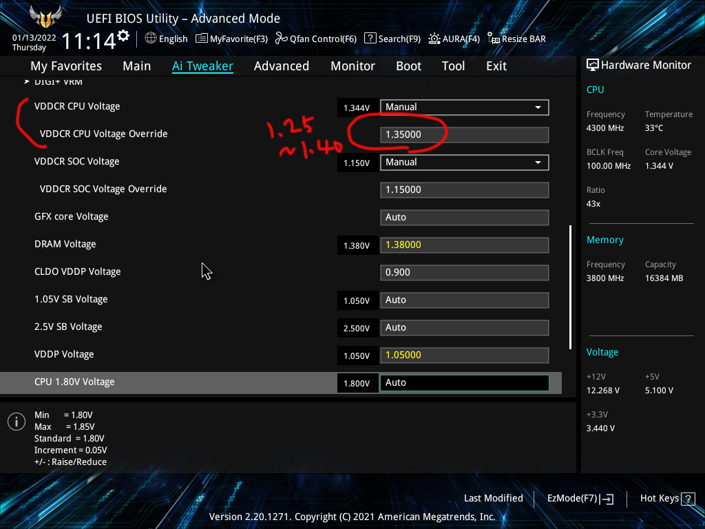실제 메인컴의 경우 전압 1.35V로 해서 쓰고 있다. 가지고 있는 부품의 멤컨, 수율에 따라 더 쪼이고 싶은 부분이 있으면 적절히 조정하길 바란다.