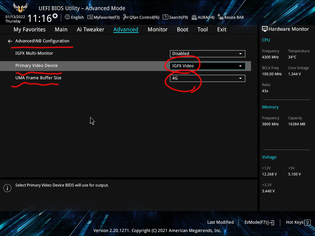 ASUS 메인보드에 램 16GB를 쓰니까, 기본으로 512MB가 잡혀 있었다. (회사마다 용량이 아마 다르게 잡힐것이다.)