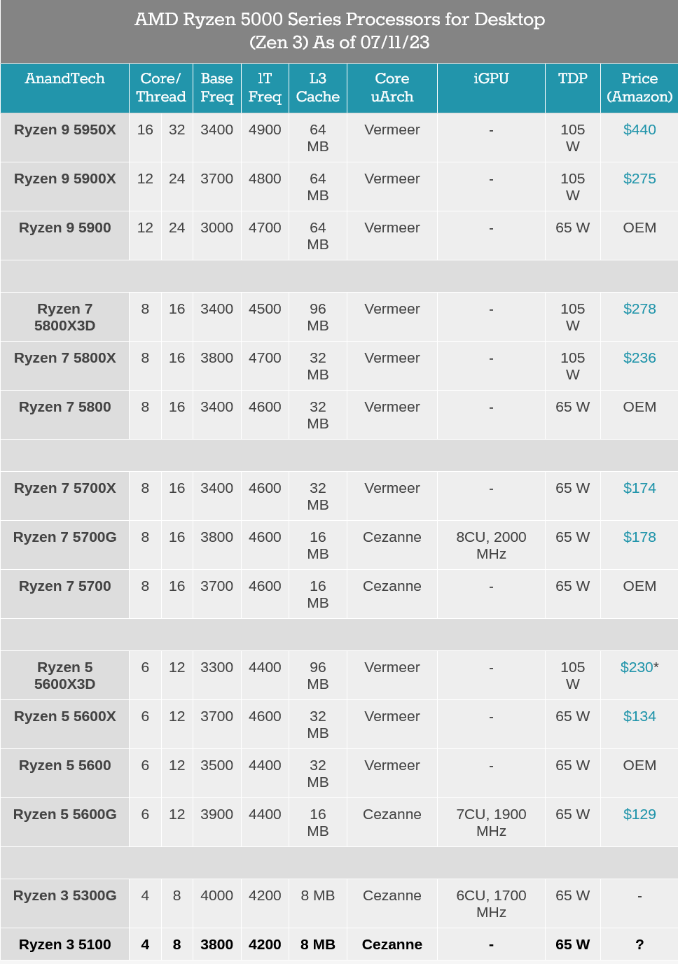 출처 : https://www.anandtech.com/show/18949/amd-quietly-introduces-ryzen-3-5100-quad-core-processor-for-am4