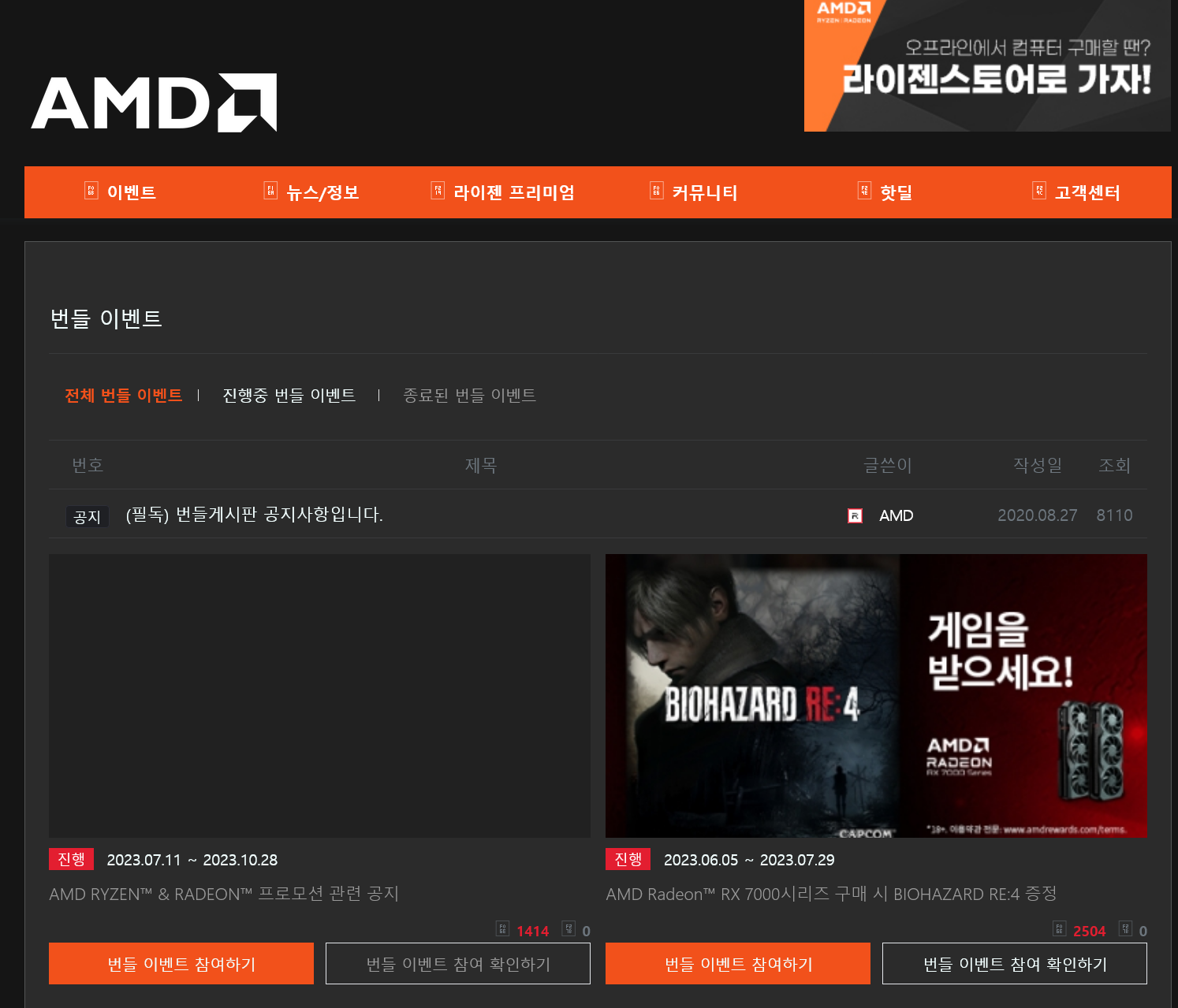 AMD 라이젠, 라데온 번들이벤트IT 소식 2023. 7. 16. 17:12728x90