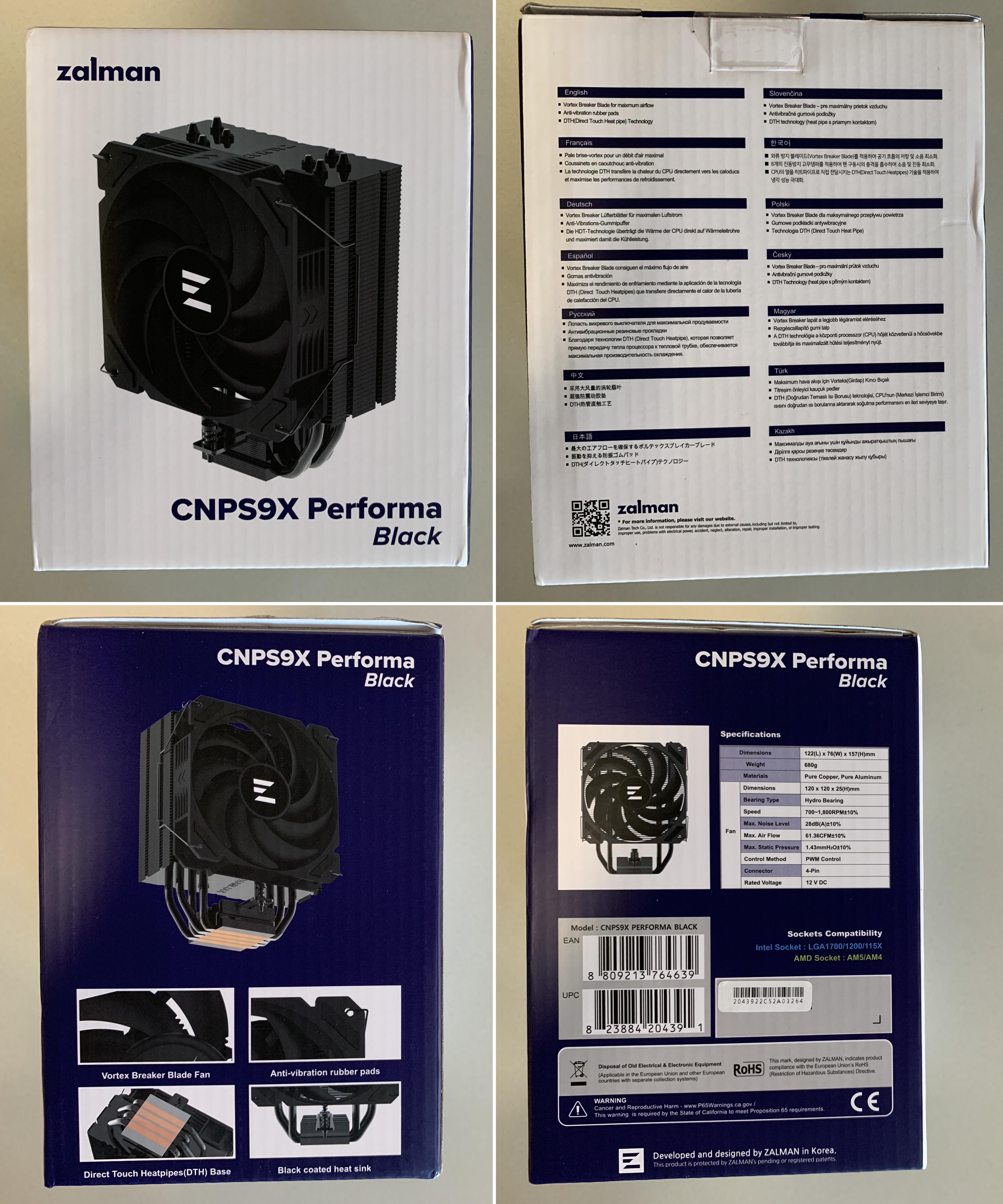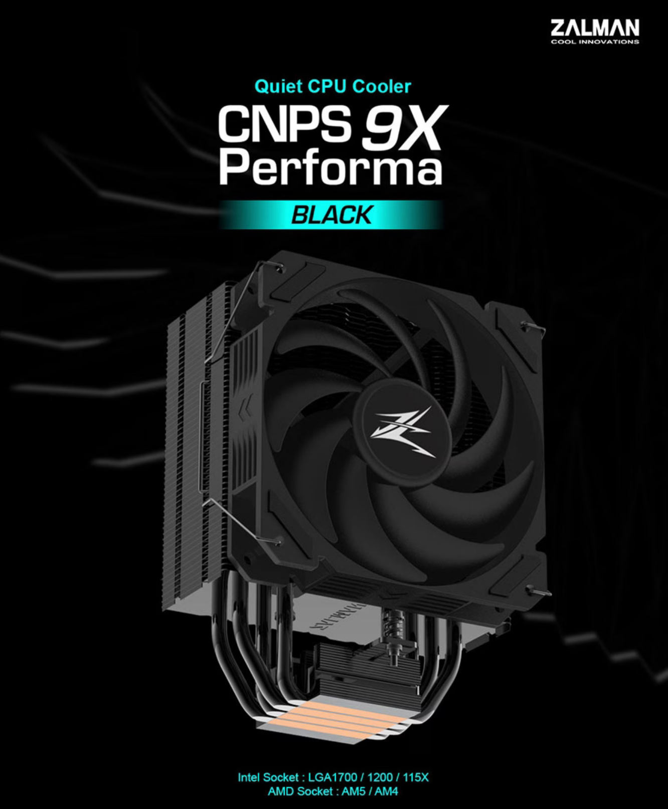 잘만 CNPS9X PERFORMA 블랙과 실버, 두 가지 색상의 제품이 존재하며 블랙 색상의 제품을 소개합니다.