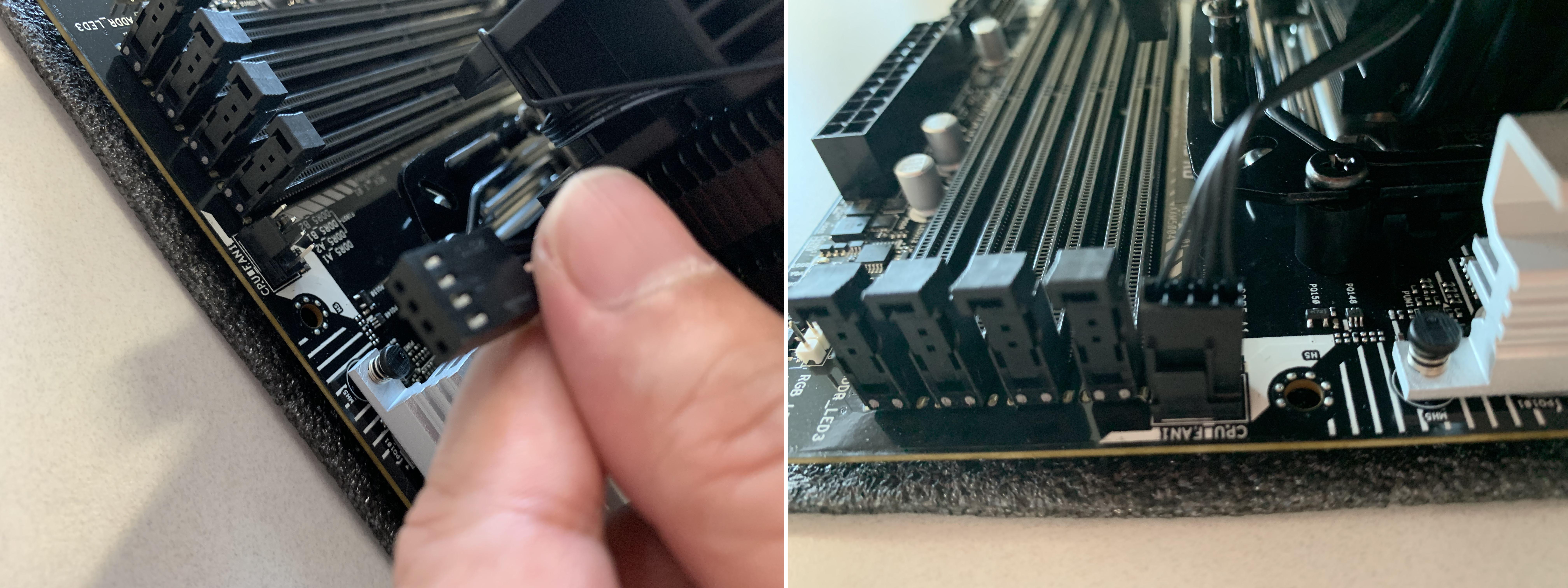 마지막으로 팬에 연결된 4핀을 메인보드의 CPU FAN에 연결하여 조립을 마무리 합니다.