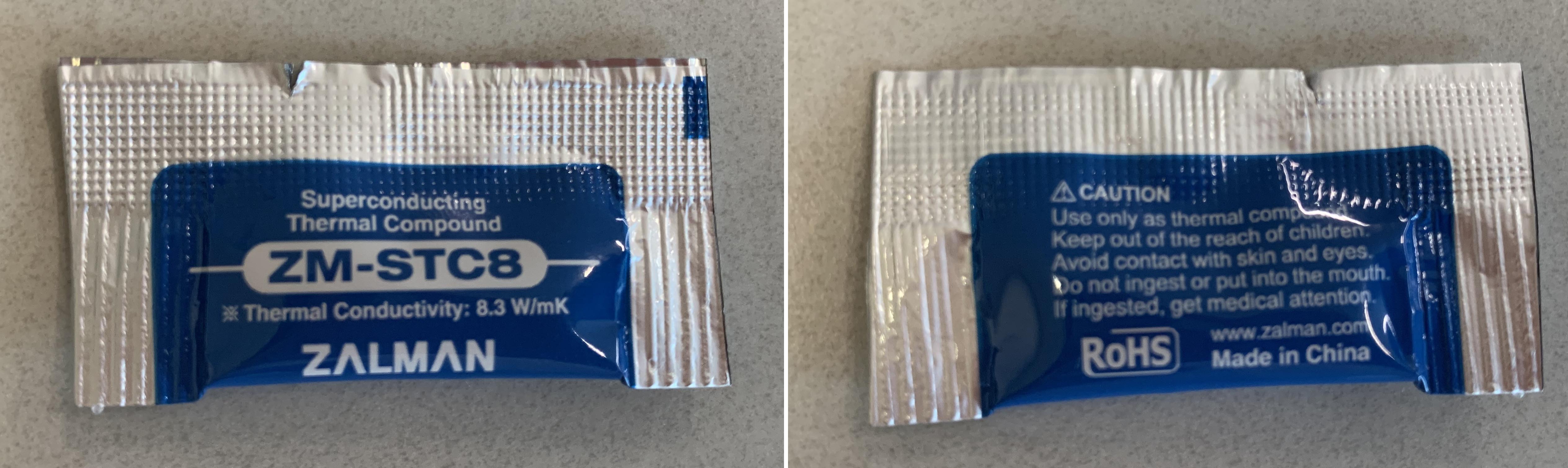 구성품에 포함된 ZM-STC8은 열저항을 최소화한 고급 써멀구리스로서, 열전도율이 무려 8.3W/mk입니다.