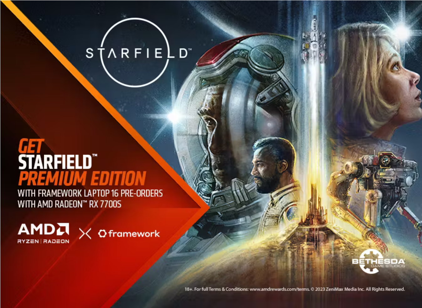 *무료 Starfield™ 프리미엄 에디션 다운로드 코드는 제한된 시간과 수량으로 제공됩니다. 사전 주문에서 그래픽 모듈을 제거하는 등 특정 주문을 수정하면 이 사전 주문 선물에 대한 자격을 상실할 수 있습니다. 취소된 모든 선주문은 더 이상 무료 게임 코드를 받을 수 없습니다. 이용 약관은 www.amdrewards.com/terms를 참조하십시오 .