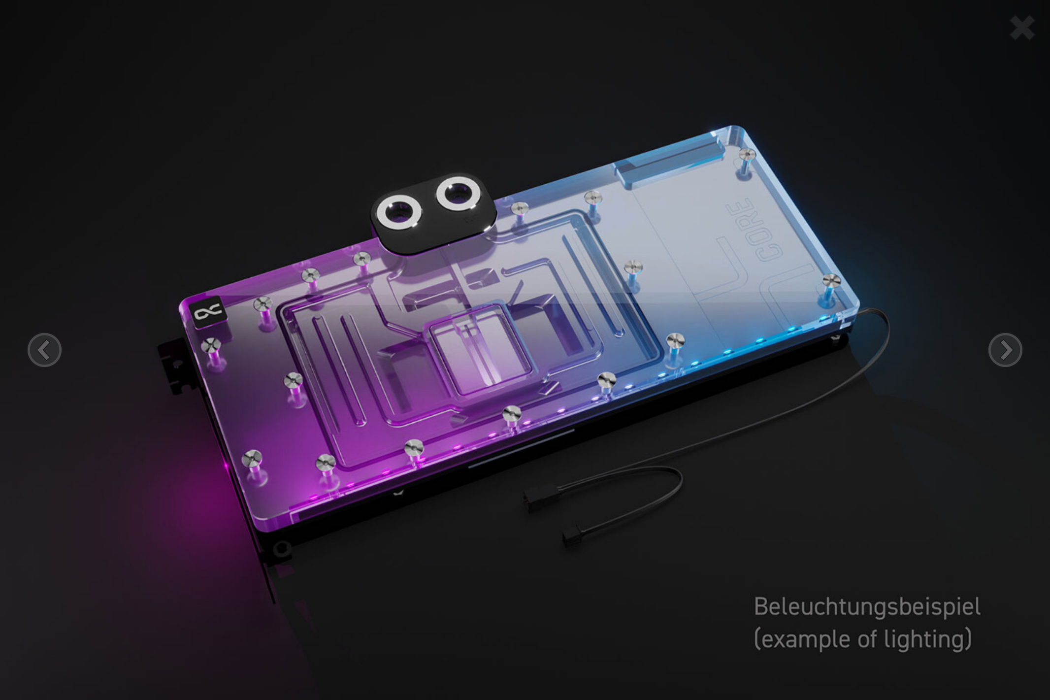 디자인에 맞춰진 알루미늄 백플레이트는 단말기와 앙상블을 이루며 쿨러 뒷면의 깨끗하고 균일한 외관으로 확신을 줍니다. 개별적으로 제어할 수 있는 조명은 디지털 주소 지정이 가능한 RGB LED로 구성되어 있으며 전체 냉각기의 균일하고 눈부신 색상의 조명을 가능하게 합니다.