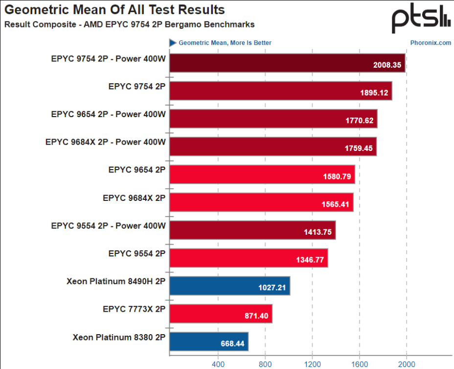 AMD EPYC 9754 "Bergamo" CPU 성능(이미지 제공: Phoronix):