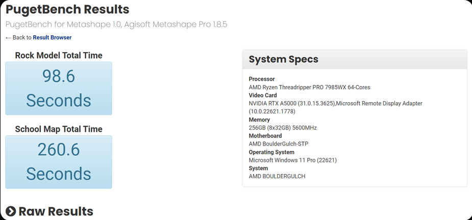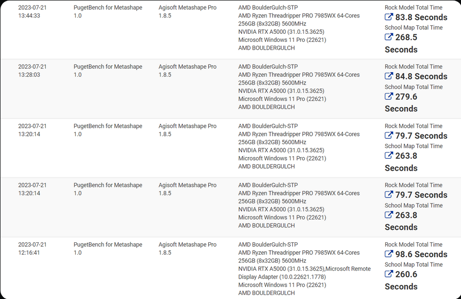 Benchleaks 가 발견한 AMD Ryzen Threadripper Pro 7000 "Storm Peak" CPU의 첫 번째 목록은 이전에 유출된 것과 같은 OPN 코드 대신 실제 브랜딩이 있습니다. 문제의 CPU는 Metashape 1.0 벤치마크 내의 PugetSystems 벤치마크 데이터베이스 에 등재된 Ryzen Threadripper PRO 7985WX입니다 . 이 벤치마크는 GPU 집약적이므로 지금은 성능 결과를 무시할 수 있습니다.