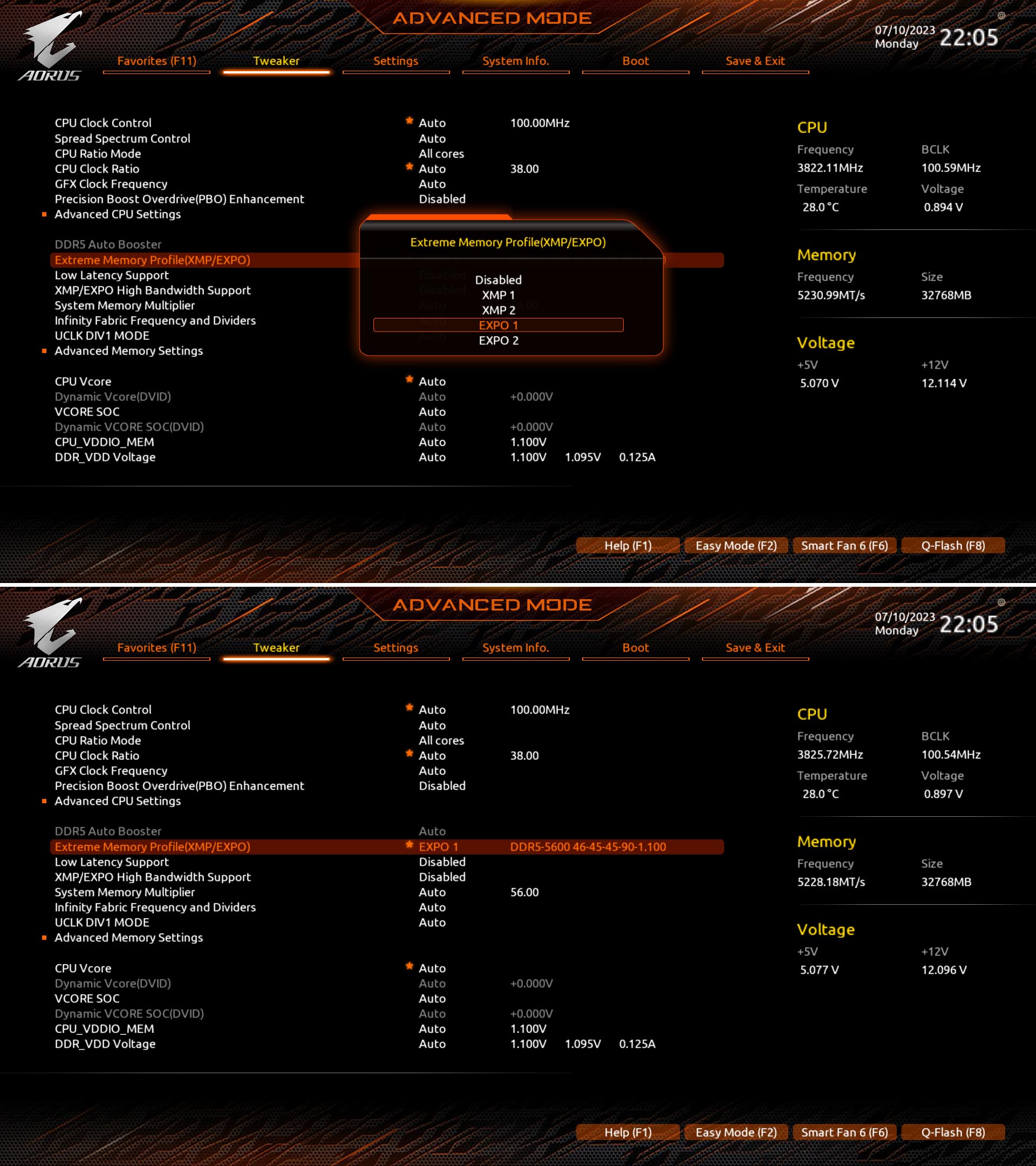 램은 모두 동일하게 EXPO1 5600 설정해서 테스트를 진행했습니다.