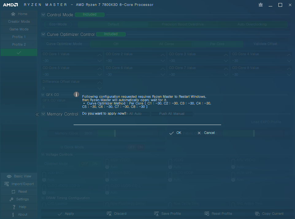 2. Ryzen Master 프로그램을 이용하여 PBO Curve Optimizer 설정