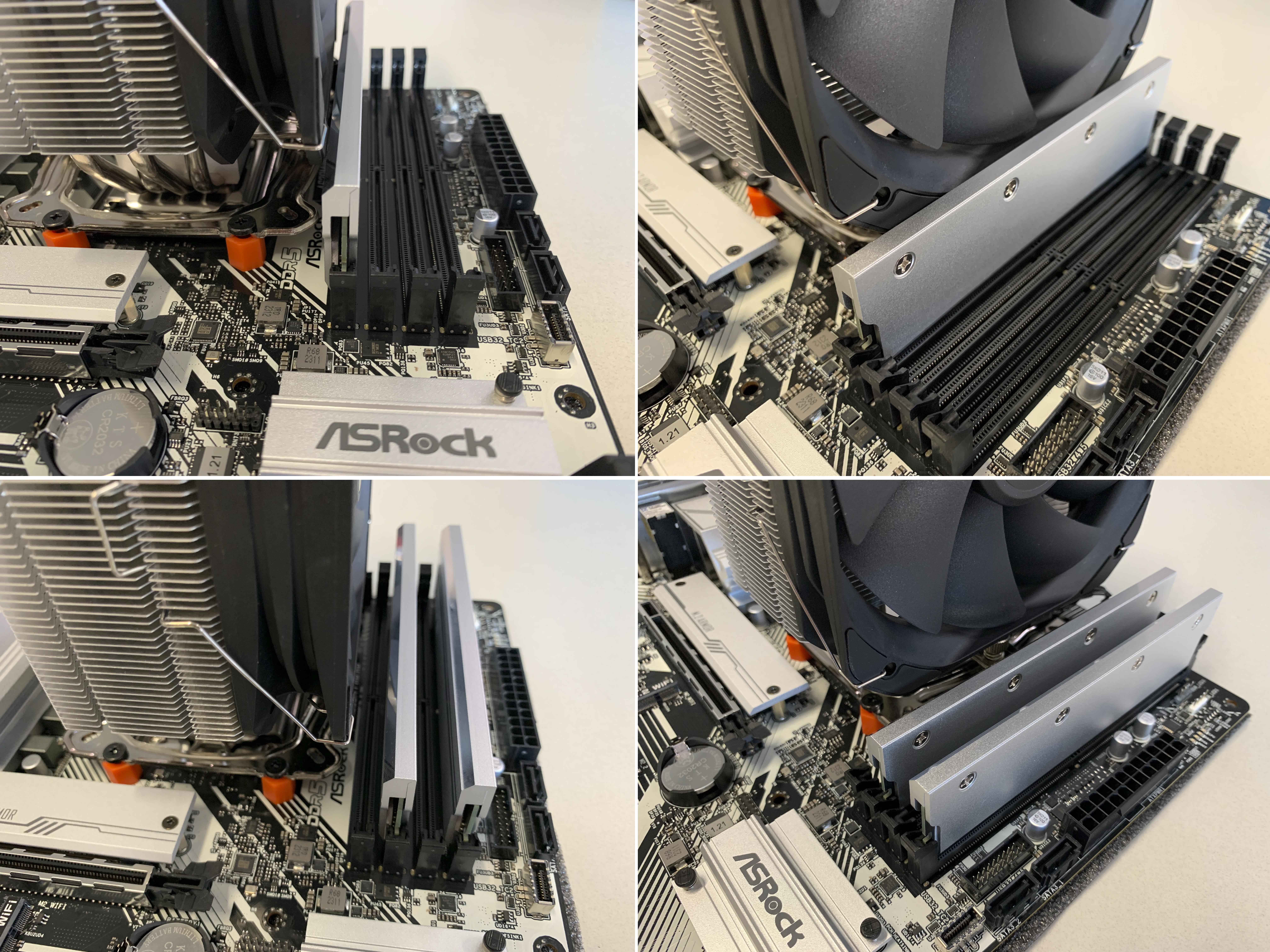 방열판을 설치한 DDR5램을 CPU쿨러와 가까운 슬롯에 설치하더라도 간섭이 일어나지 않아서 풀뱅크로 설치해도 괜찮을 만큼 호환성이 좋음을 알 수 있습니다.