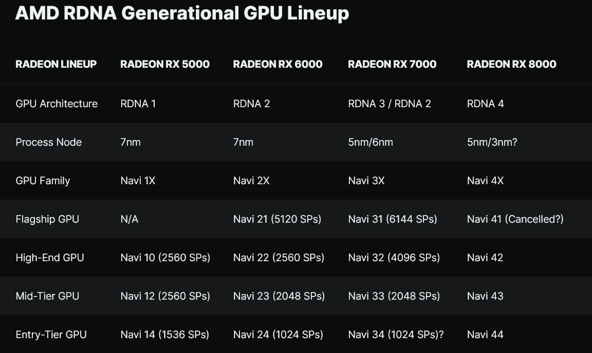 이것은 여전히 소문이고 아직 AMD에서 공식적으로 확인한 것은 없지만 RDNA 4 라인업은 Navi 42 및 Navi 41 칩이 있는 Navi 44 및 Navi 43 SKU만 얻을 것으로 보입니다. ). 이 라인업은 2024년에 출시될 예정 이므로 출시까지 아직 많은 시간이 남아 있으며 회사는 올 가을 후반에 더 많은 업데이트를 받을 RDNA 3 제품군을 아직 완성하지 못했습니다 .