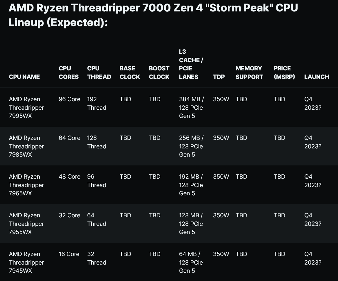 AMD Ryzen Threadripper 7000 CPU, 16코어 및 최대 5.2GHz 클럭 벤치마크IT 소식 2023. 8. 19. 15:35728x90 16개의 Zen 4 코어와 5GHz 이상의 클럭 속도를 특징으로 하는 최신 AMD Ryzen Threadripper 7000 CPU가 유출되었습니다. 유출된 AMD Ryzen Threadripper 7000 CPU는 16개의 Zen 4 코어, 최대 5.3GHz 클럭 속도를 특징으로 합니다. 우리는 최근 주력 AMD Ryzen Threadripper PRO 7995WX CPU 의 유출된 벤치마크로 처리되었으며 이제 Geekbench 6 데이터베이스에 또 다른 칩이 나타났습니다. 이 칩에는 공식 브랜딩이 부착되어 있지 않지만 "100-000000886-30_Y" OPN을 사용하여 곧 출시될 Threadripper 7000 제품군의 일부가 되어야 합니다. 이것이 PRO인지 비 PRO SKU인지 알 수 없습니다.  사양의 경우 AMD Ryzen Threadripper 7000 CPU는 Zen 4 코어 아키텍처를 기반으로 16개의 코어를 제공하므로 32개의 스레드, 64MB의 L3 캐시 및 16MB의 L2 캐시를 제공해야 합니다. 이 칩에는 Zen 4 CCD가 2개만 활성화되어 있어야 하지만 상단 칩에는 SP5에서 최대 12개의 CCD, SP6 플랫폼에서 8개의 CCD가 있습니다. CPU는 32GB의 DDR5 메모리를 갖춘 Lenovo 플랫폼에서 테스트되었습니다.  Geekbench 6 벤치마크 내 성능 결과는 싱글 코어 테스트 점수 2707점과 멀티 스레드 테스트 점수 17,419점을 보고합니다. 이러한 멀티 코어 수치는 16코어 및 32스레드를 제공하지만 Zen 4코어 아키텍처를 기반으로 하지만 단일 코어 점수는 더 높은 클럭 속도.  여기에 사용된 "균형" 프로필은 칩의 성능을 제대로 나타내지 못하는 것 같습니다. 약 350W TDP로 설계되었으므로 약간 더 빨라야 하지만 칩이 달성할 수 있는 범위는 제한적입니다. AMD Ryzen 9 7950X는 2904개의 싱글 코어 및 19,092개의 멀티 코어 포인트를 기록하며 동일한 코어, 스레드 및 캐시 수를 유지하면서 클럭 속도 측면에서 훨씬 빠른 CPU입니다. 칩은 최대 225W PPT에서 실행되지만 성능에 크게 영향을 미치지는 않습니다. 전체 제품군이 공식적으로 소개되면 이 칩이 Ryzen Threadripper Pro 7955WX/7945WX 로 나타날 가능성이 높지만 그때까지는 자세한 정보를 기다려야 합니다.  출처 : https://wccftech.com/amd-ryzen-threadripper-7000-cpu-16-cores-up-to-5-2-ghz-clocks-benchmark-leak/ #amd #ryzen #스레드리퍼7000 'IT 소식' 카테고리의 다른 글AMD, Radeon RX 6750 GRE 그래픽 카드 준비, RTX 4060 Ti 성능 약 $299 제공 (0) 2023.08.20 AMD Zen5 성능 실행 포인트 공개, CineBench R23 멀티코어 최대 49000포인트 (0) 2023.08.19 AMD Radeon GPU Detective는 GPU 충돌 문제 해결 (0) 2023.08.18 AMD는 더 큰 3D V-캐시 최적화로 Ryzen 칩셋 드라이버 업데이트 (0) 2023.08.18 AMD RDNA 3.5 "GFX 11.5" GPU 드라이버 준비 중, Ryzen 8000 CPU 및 APU 지원 예정 (0) 2023.08.18