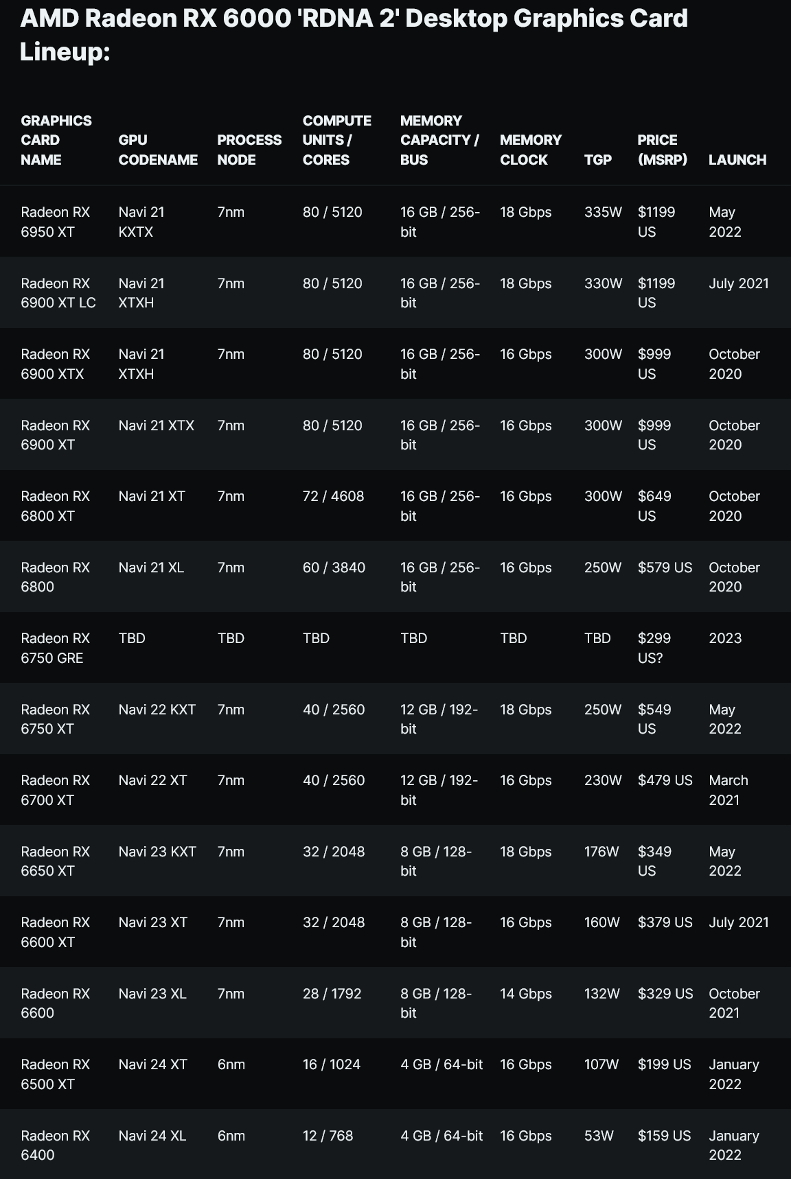 이 정보는 AMD가 이전 RDNA 2 아키텍처 를 활용하는 새로운 그래픽 카드를 준비할 수 있다고 말하는 Bilibili 사용자 및 기술 블로거( ITHome 을 통해 ) 에서 가져온 것입니다 . 이 새로운 Radeon RX 6750 GRE(Golden Rabbit Edition) 그래픽 카드는 올해 출시되는 두 번째 GRE 변형이며 다른 하나는 Radeon RX 7900 GRE입니다.