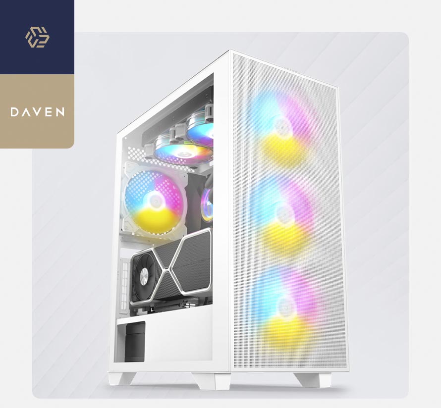게이밍PC구성이 계획을 가지고 계신분이라면, 디자인 깔끔하고 쿨링에 특화된 가성비케이스로 DAVEN APEX MESH 강화유리 케이스를 추천합니다.