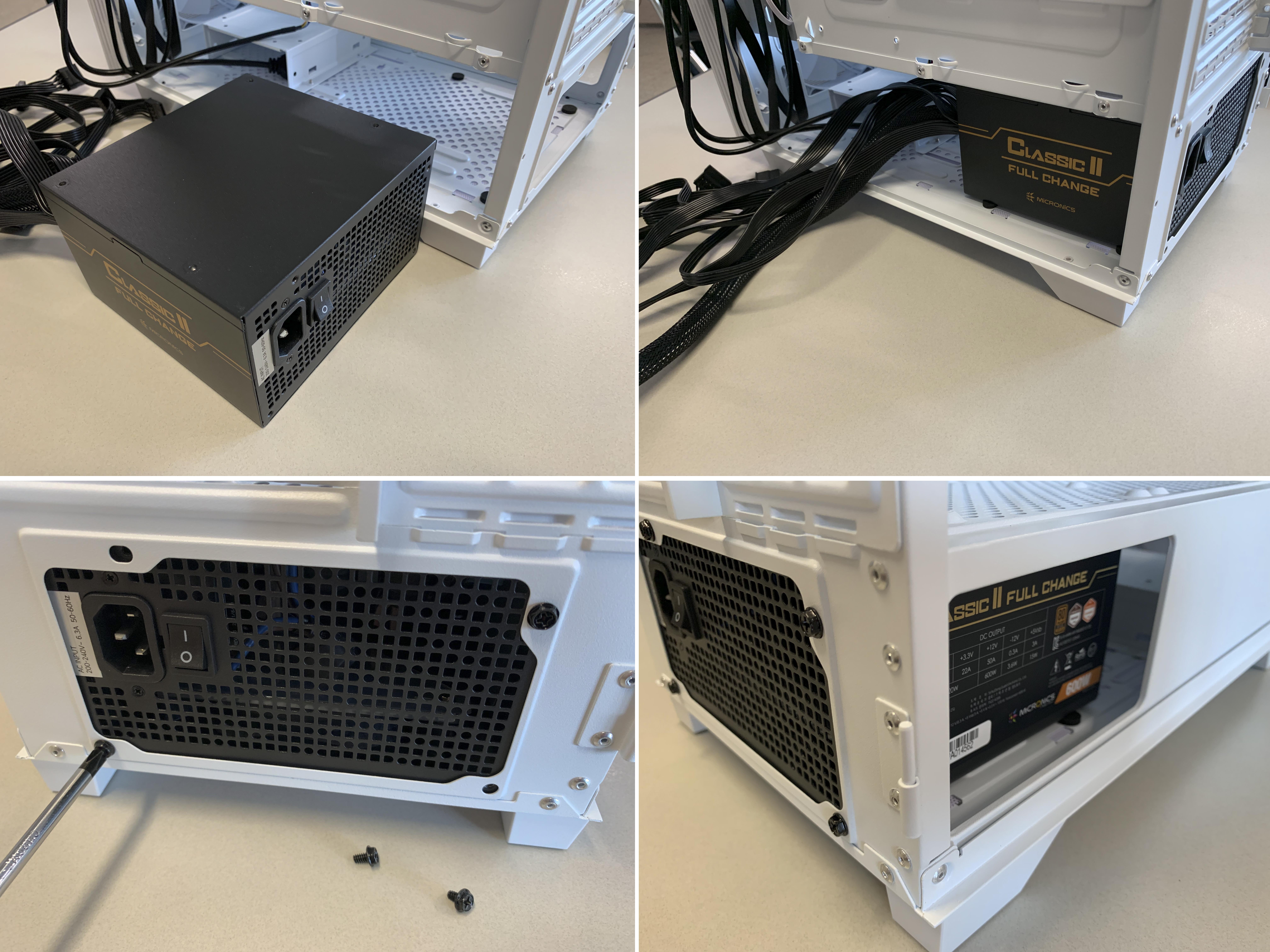 파워를 나사 4개로 고정합니다. 어떤 파워를 사용중인지 알 수 있는 디자인이라 마음에 듭니다.