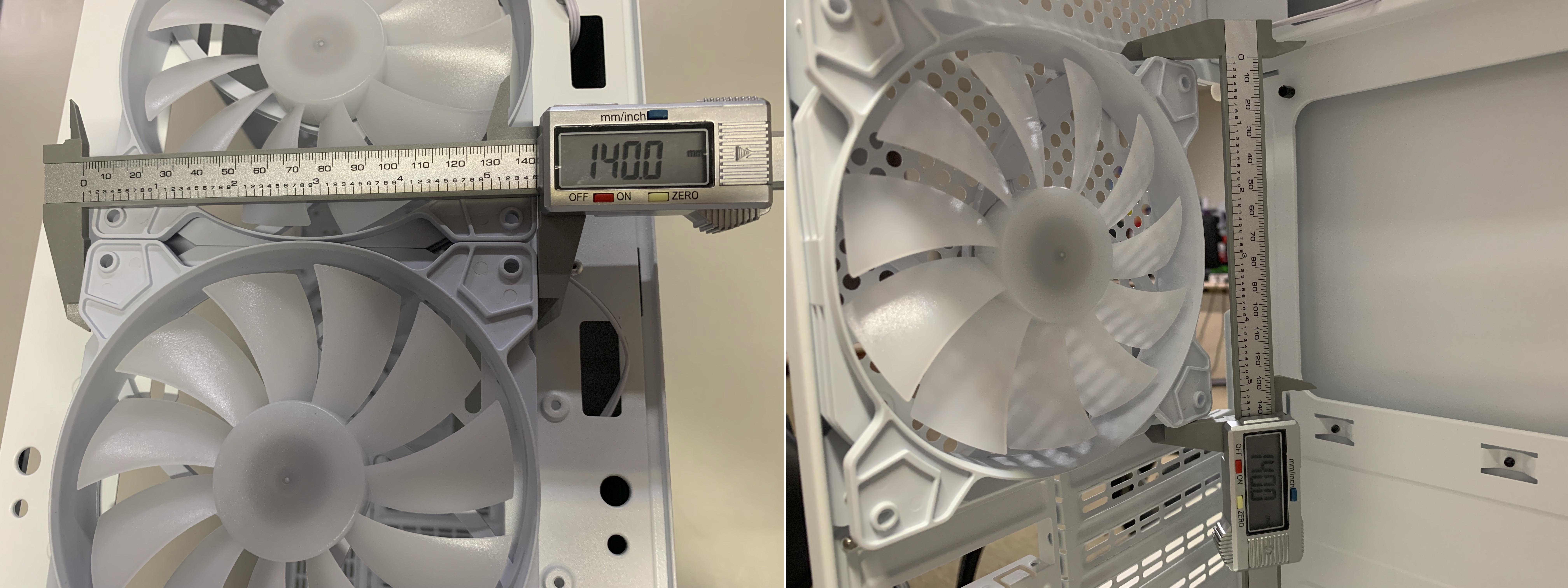 전면 팬 3개와 후면 팬은 동일하게 140mm 사이즈로 측정되었으며, 시원한 쿨링이 기대됩니다.