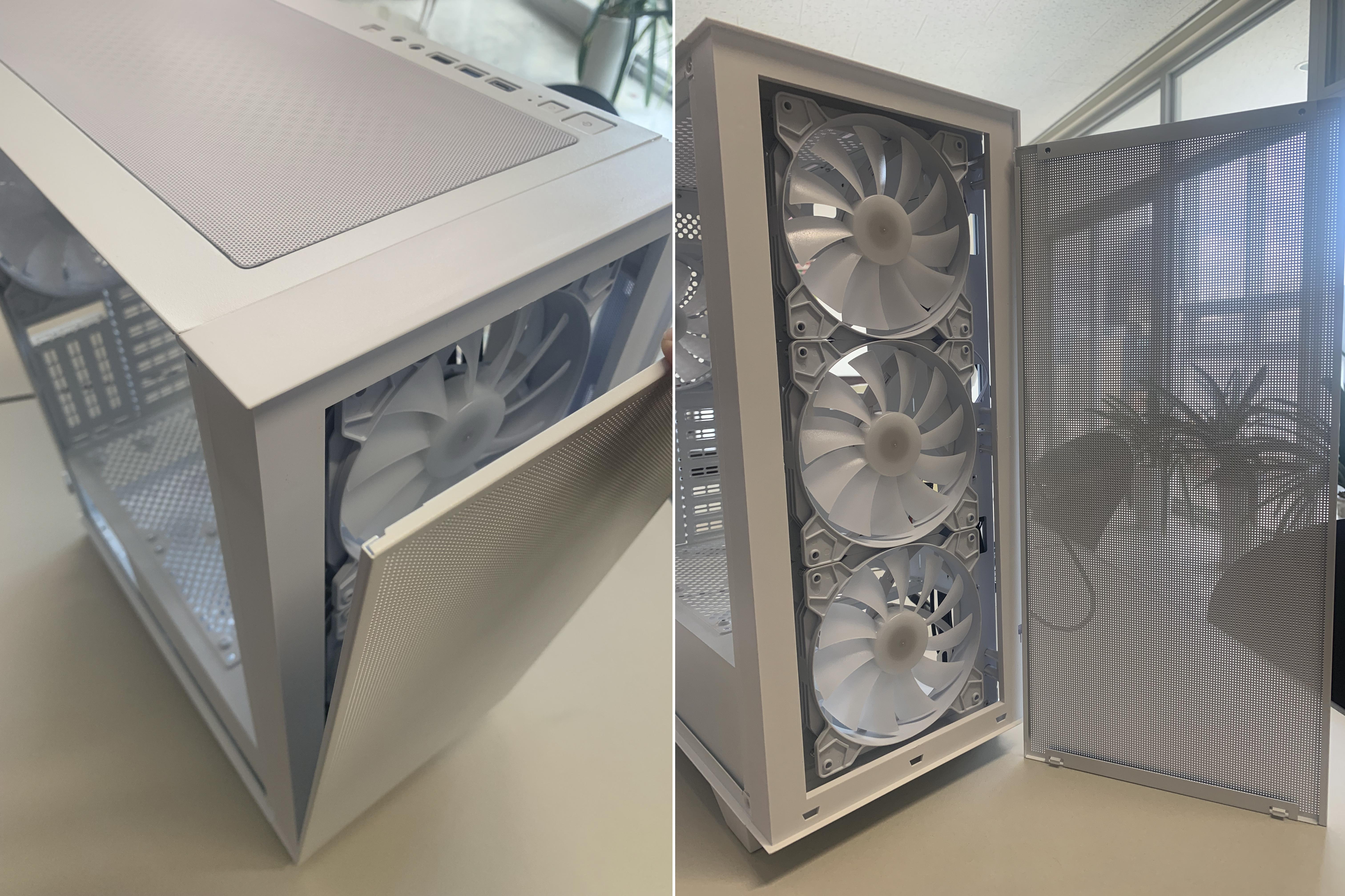 편리한 전면 분리구조로 되어 있으며, 먼지 필터가 따로 필요없는 전면 스틸 메쉬 그릴을 적용되었습니다. 먼지 유입을 최소화하고 공기 흐름을 최대화하여, 최고의 냉각 시스템을 제공하기 위한 정말 신박한 구조인데, 아이디어가 정말 대단하다고 느꼈습니다.
