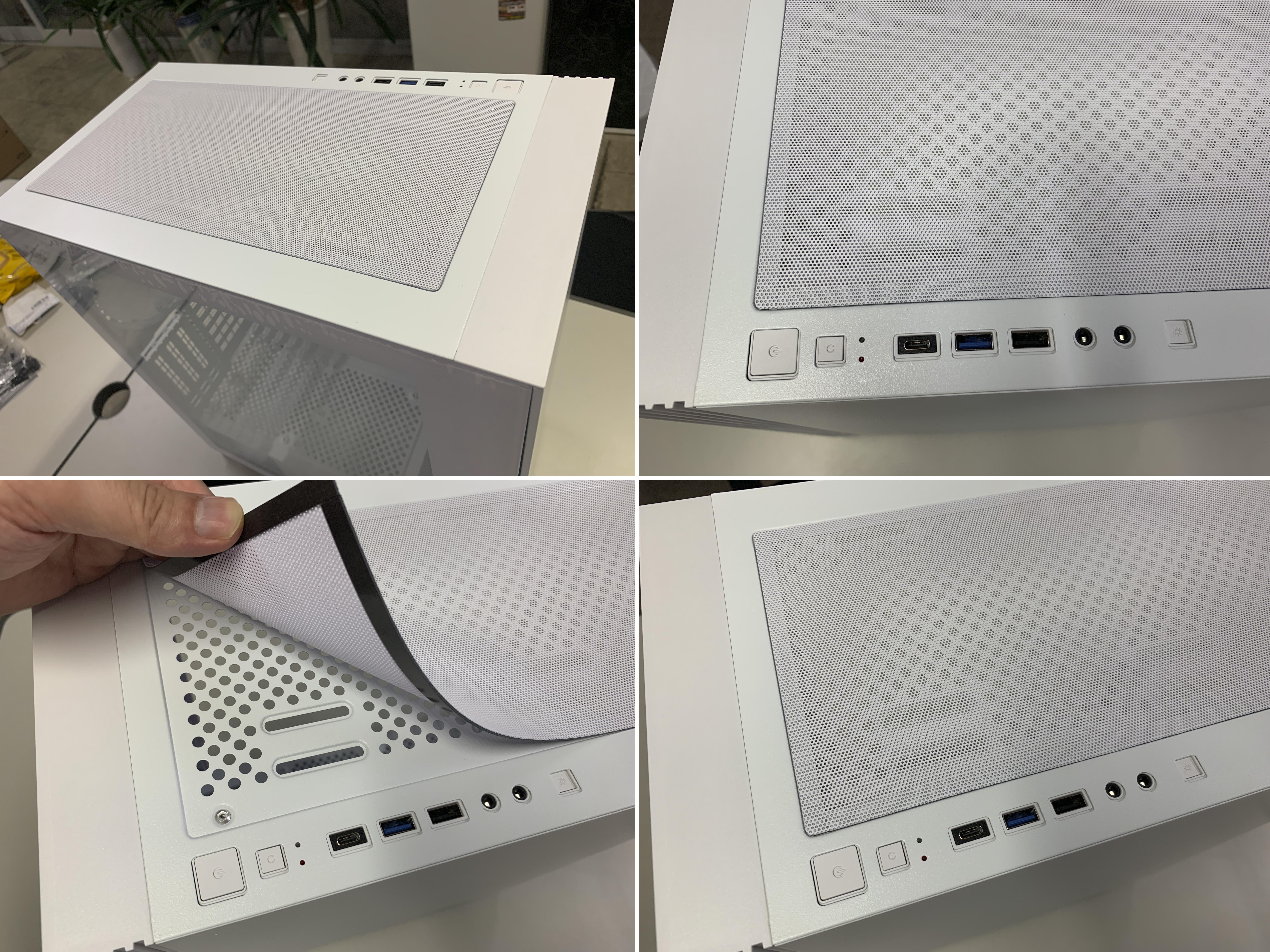 상단에는 자석 부착식 먼지필트로 먼지를 손쉽게 털어낼 수 있습니다.