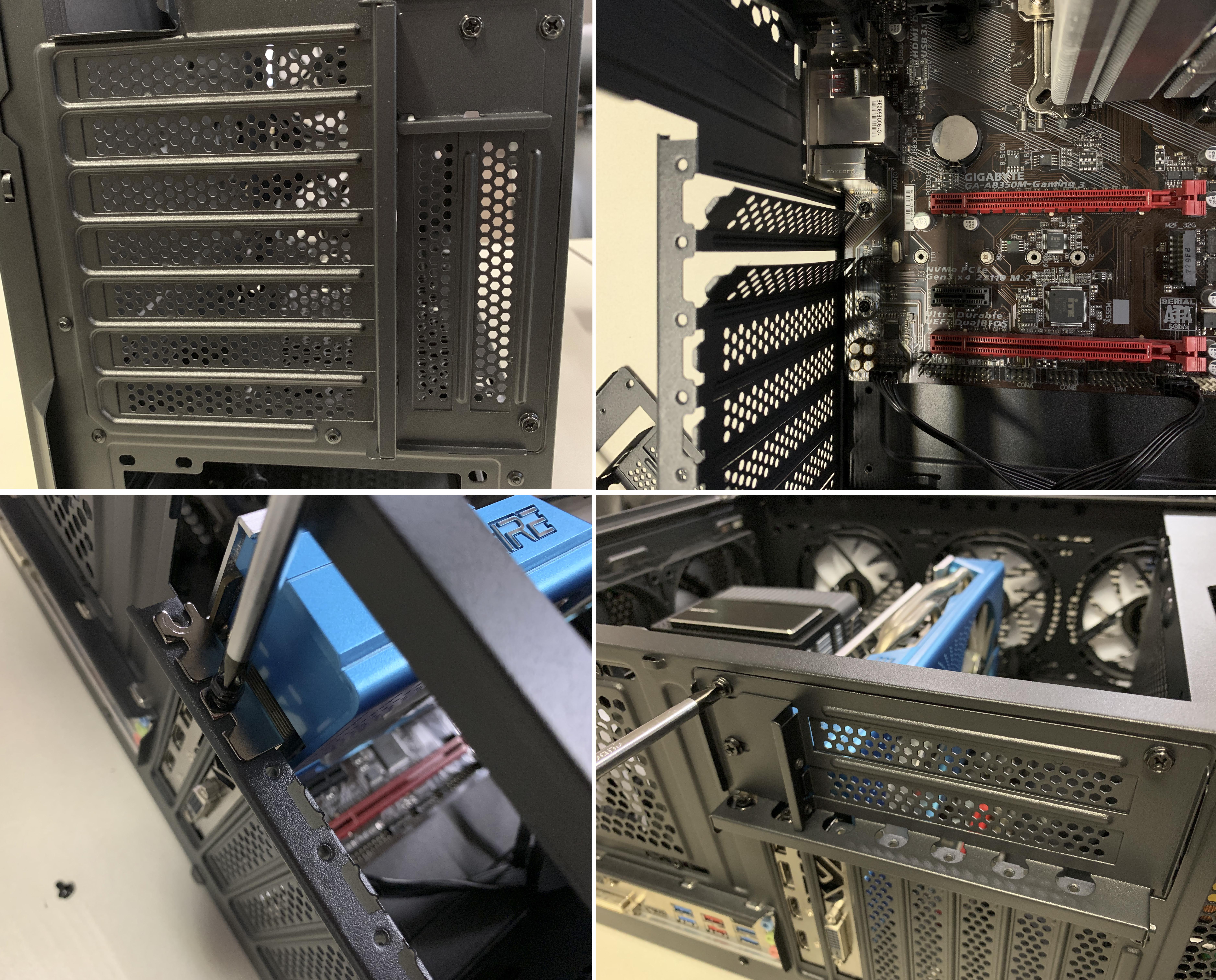 PCI 슬롯을 잡고 흔들어 분리한 다음, 그래픽카드를 장착합니다.