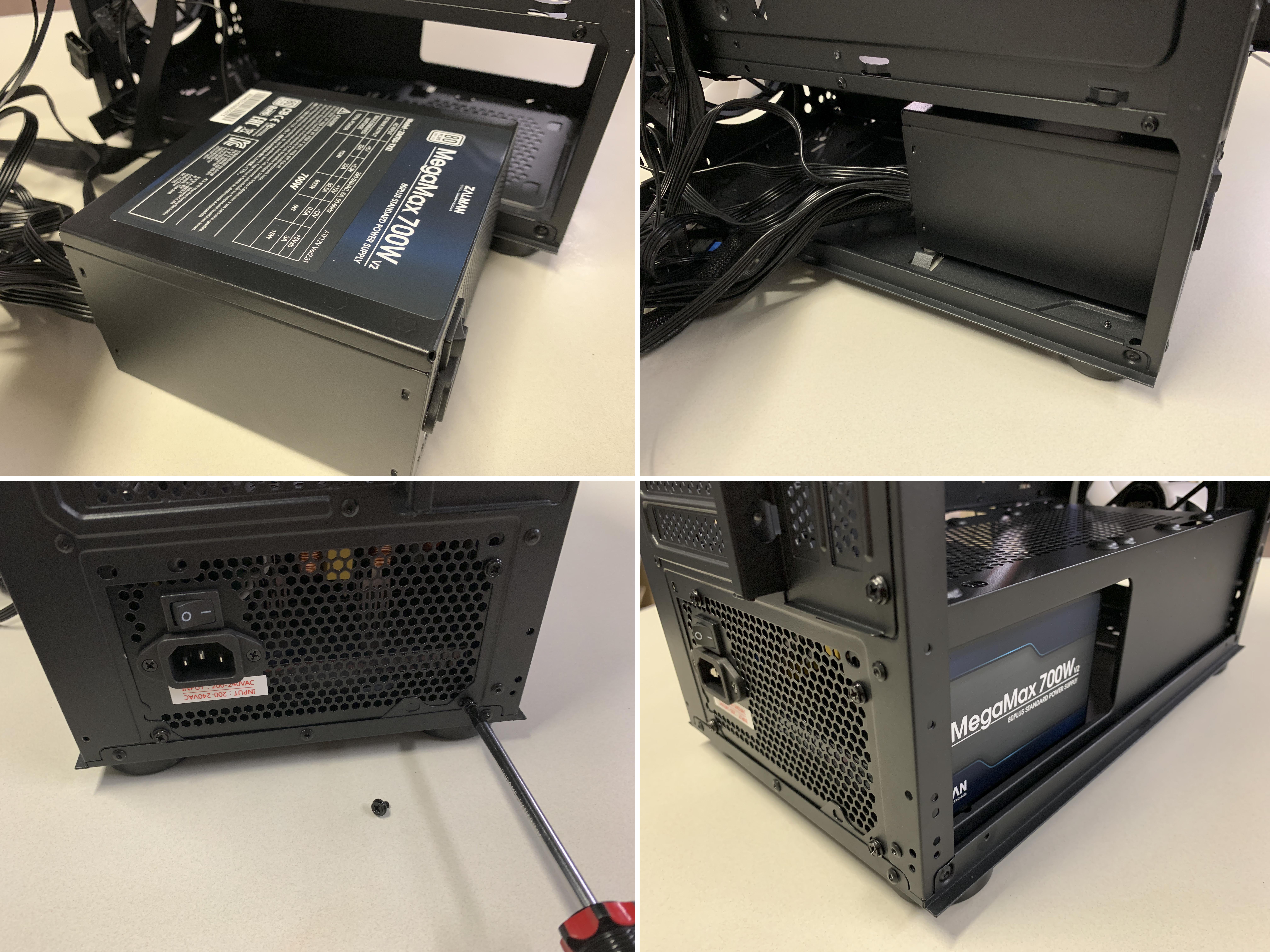 파워를 나사 4개로 고정합니다. 사용 중인 파워를 언제든지 알아 볼수 있는 디자인이 마음에 듭니다.