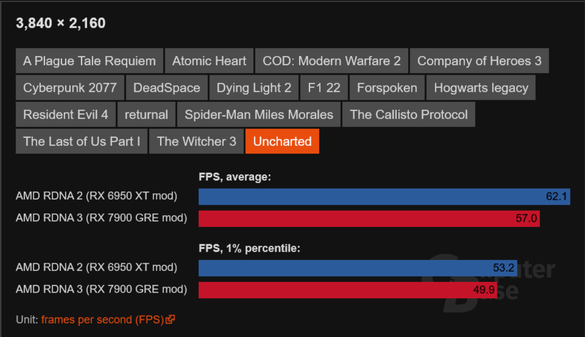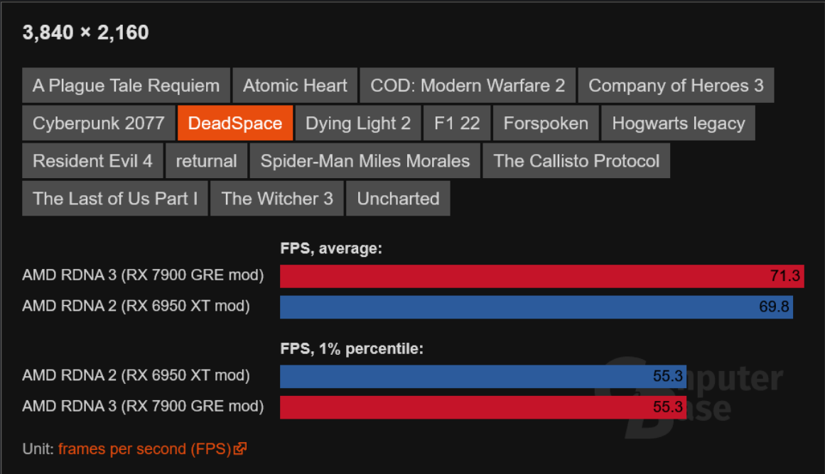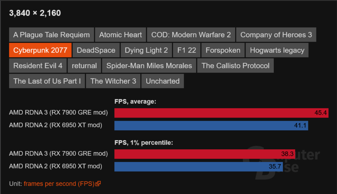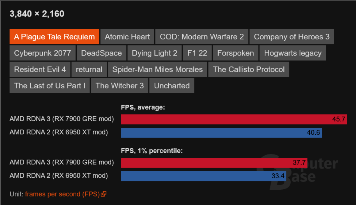 AMD의 Radeon RX 7000 시리즈 GPU는 덜 성공적인 라인업 중 하나입니다. 제한된 세대 간 향상 과 열악한 광선 추적 성능으로 인해 열광적인 왕관을 경쟁 NVIDIA에 쉽게 부여했습니다. ComputerBase는 RX 7900 GRE를 RX 6950 XT에 대해 테스트한 결과 전자가 후자만큼 빠른 것으로 나타났습니다. 즉, RDNA 3 아키텍처는 이전 디자인보다 거의 빠르지 않습니다.