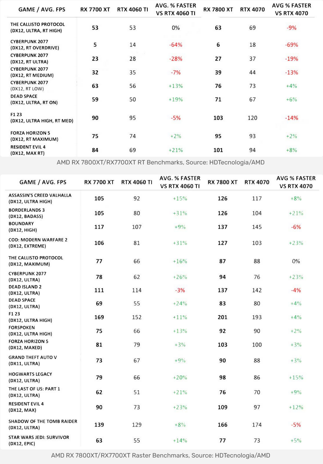 AMD의 자체 레이 트레이싱 게이밍 테스트에 따르면 Radeon RX 7800 XT는 GeForce RTX 4070보다 0.5% 빠릅니다.