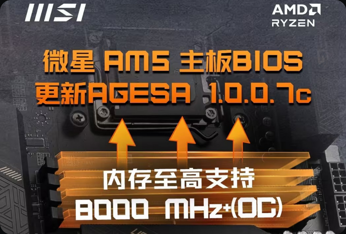 MSI AM5 마더보드는 AMD AGESA 1.0.0.7c BIOS로 최대 DDR5-8000 메모리 지원을 얻습니다.