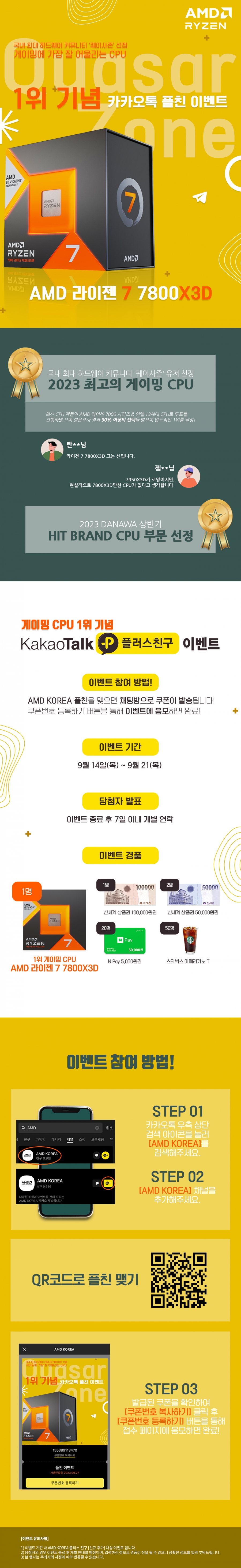 #amd #7800x3d #퀘이사존1위기념 #카톡 #플친이벤트