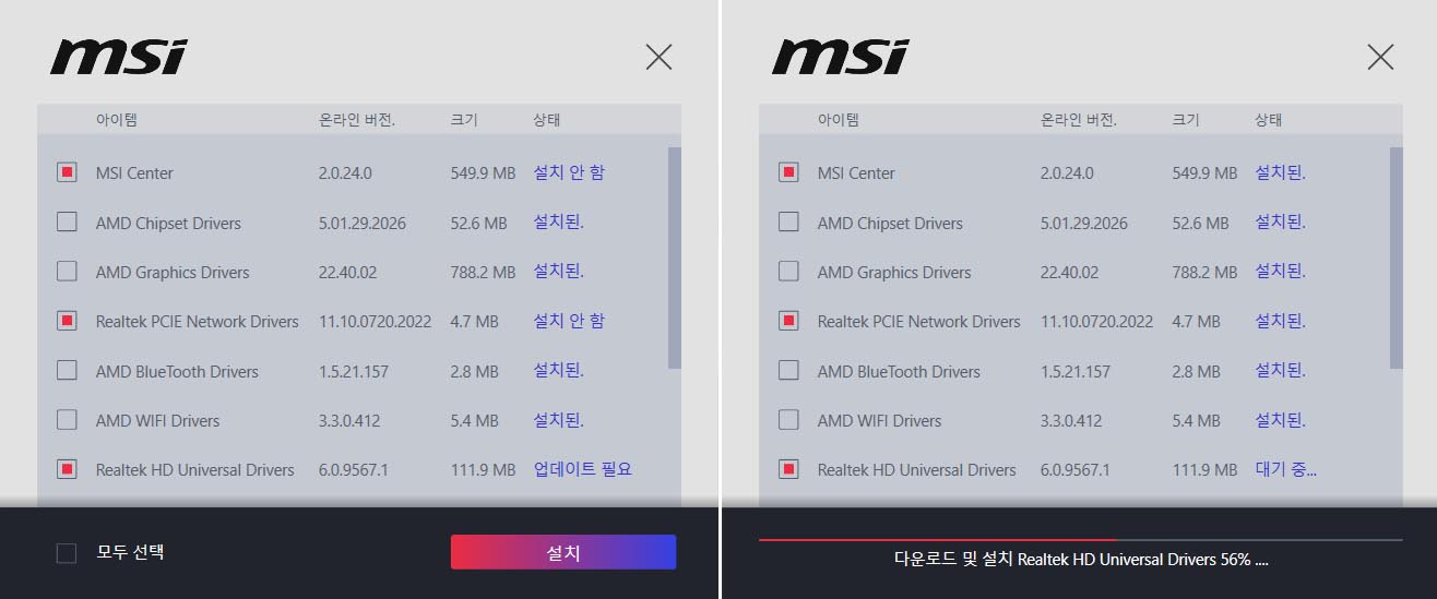 윈도우로 진입하니까, 자동으로 모든 드라이버를 알아서 해주네요.