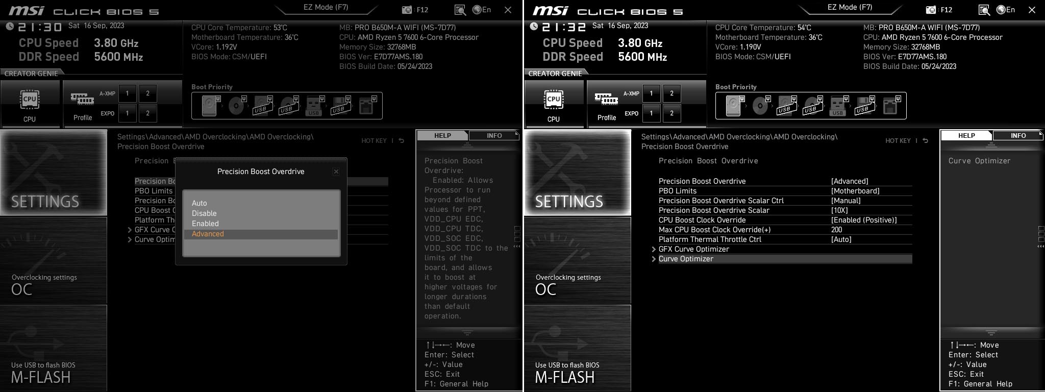 PBO Curve Optimizer가 보입니다. 이거 때문에 메인보드 교체하는데 너무 반갑네요.